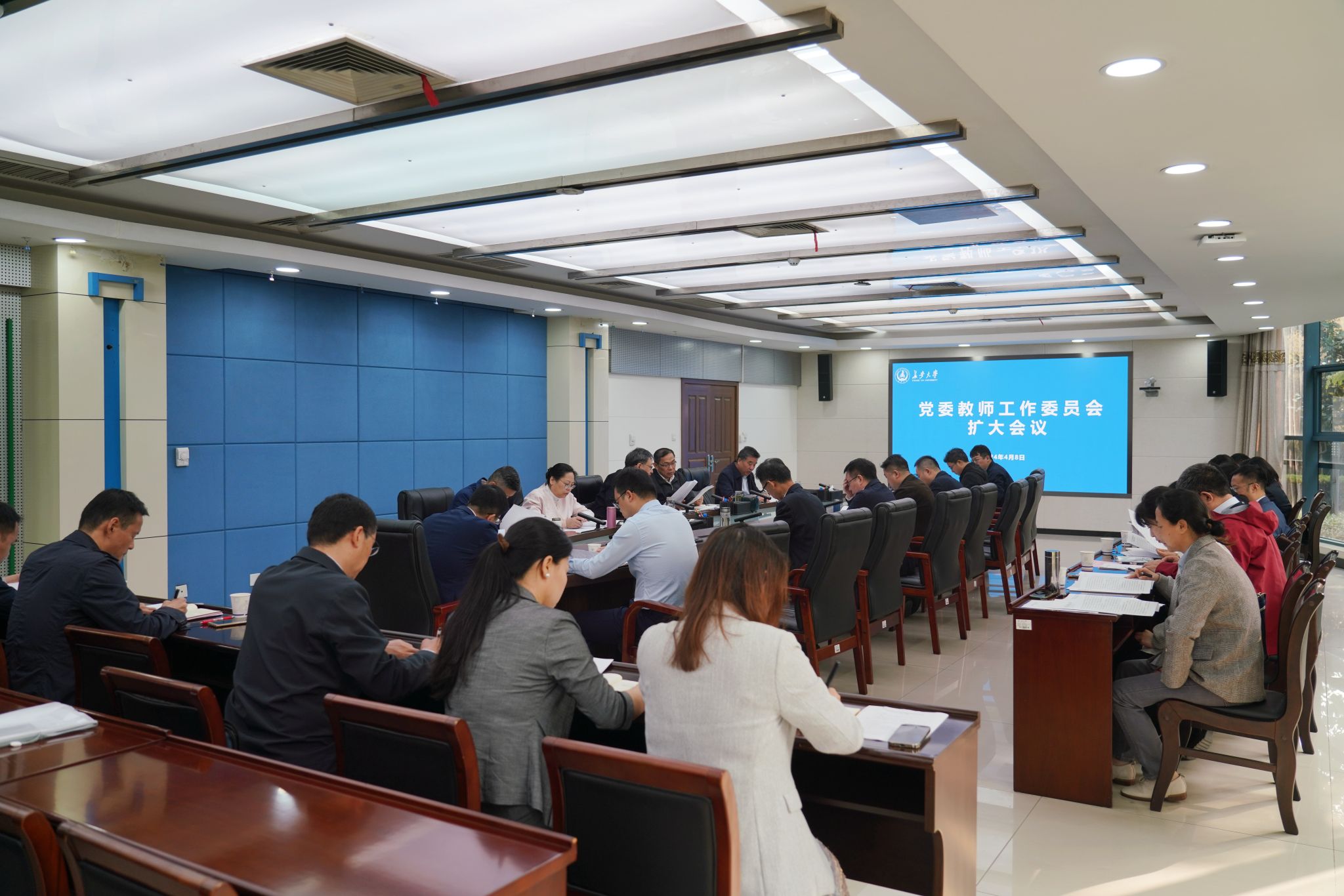 4月8日上午,学校在北校区北辰楼会议中心第三会议室召开党委教师工作委员会扩大会议。校党委书记陈志坚,校长沙爱民,校党委副书记、副校长彪晓红,副校长裴建中出席会议。会议由副校长范文主持。