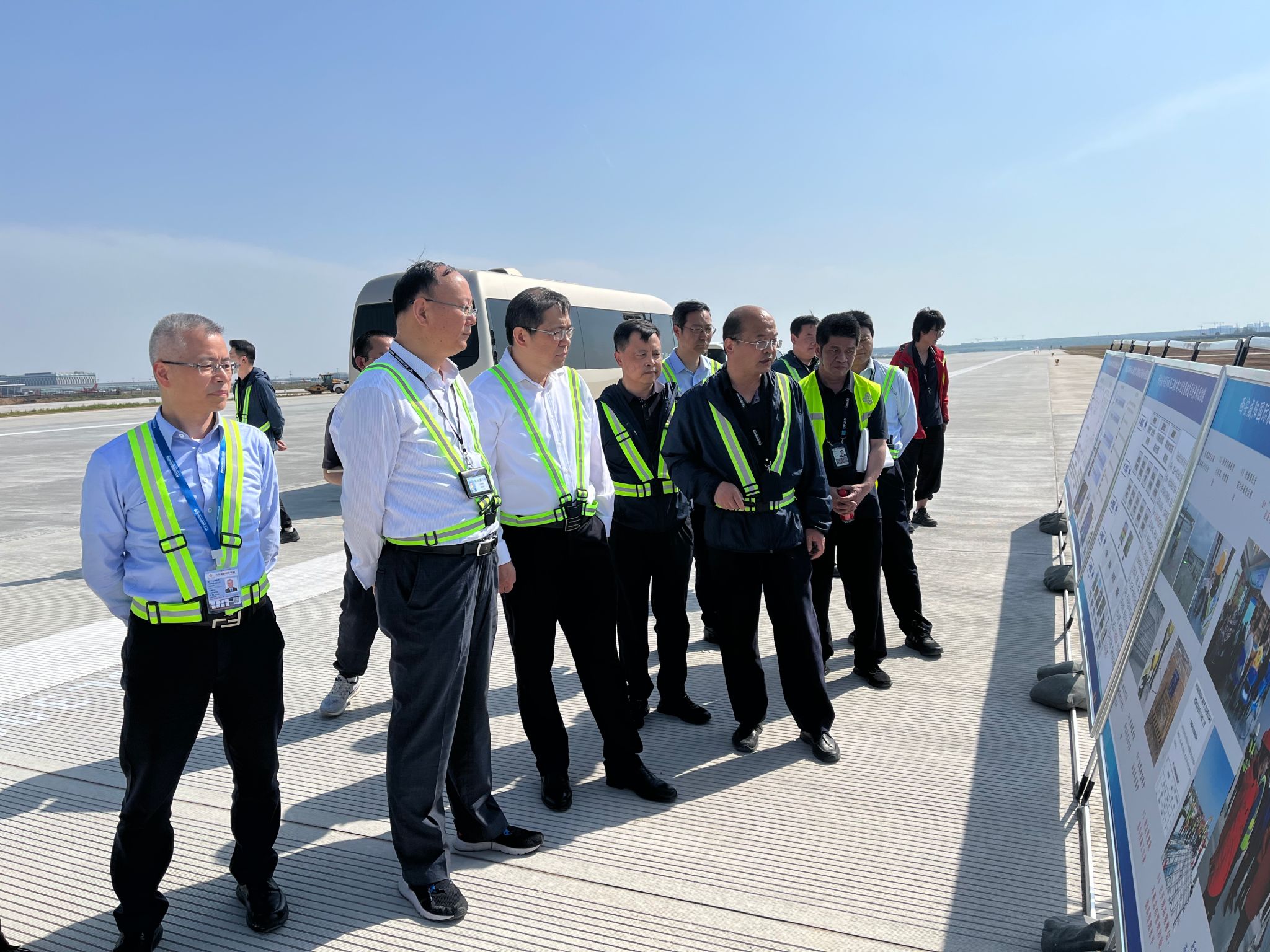 沙爱民一行先后前往西安机场空管塔台、机场运行控制中心、机场北飞行区N2智慧跑道和建设中的T5航站楼进行了实地调研,通过现场观摩、展板讲解、视频介绍等形式,全面了解了西安咸阳国际机场三期扩建工程及智慧跑道建设情况等。