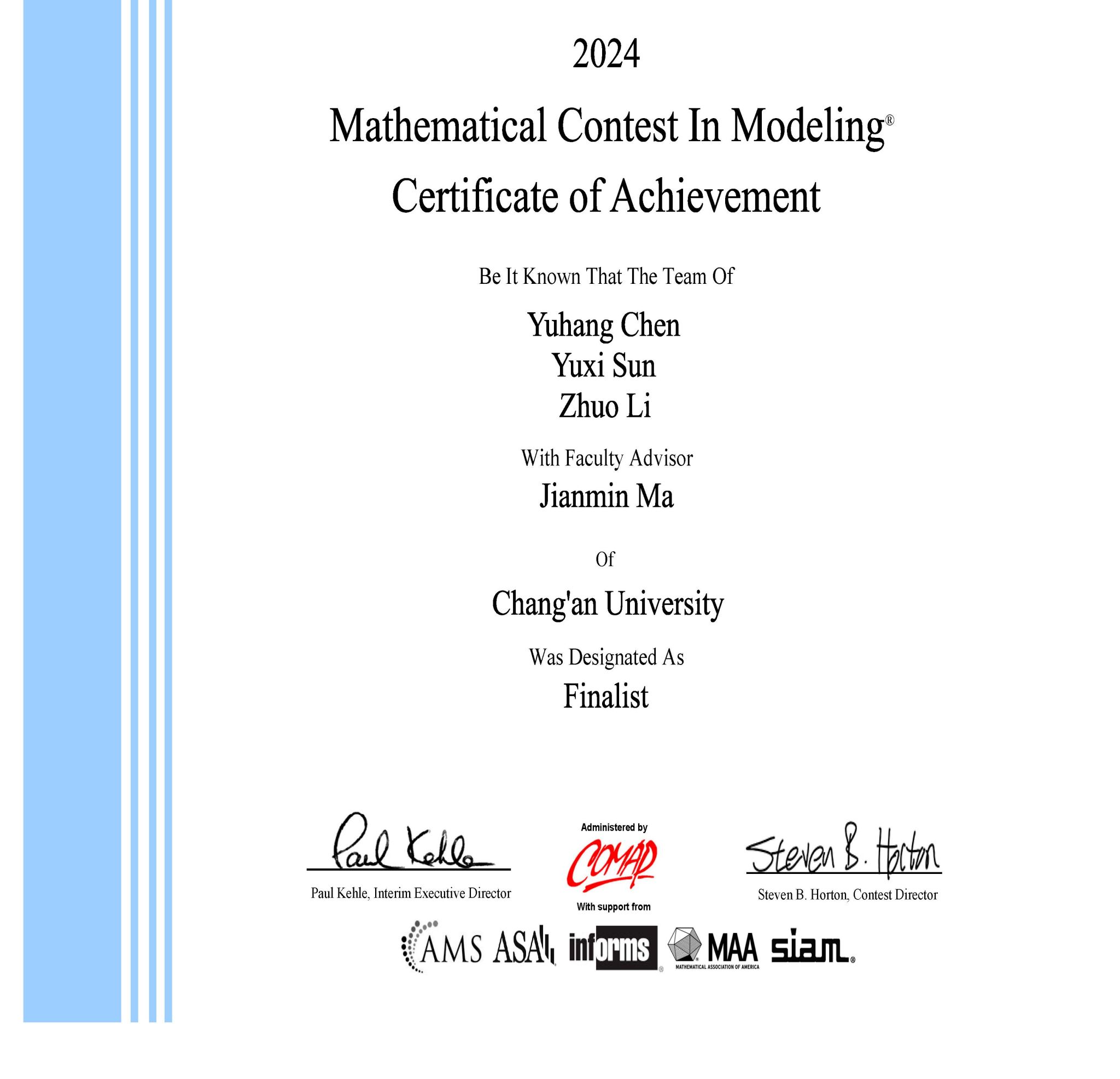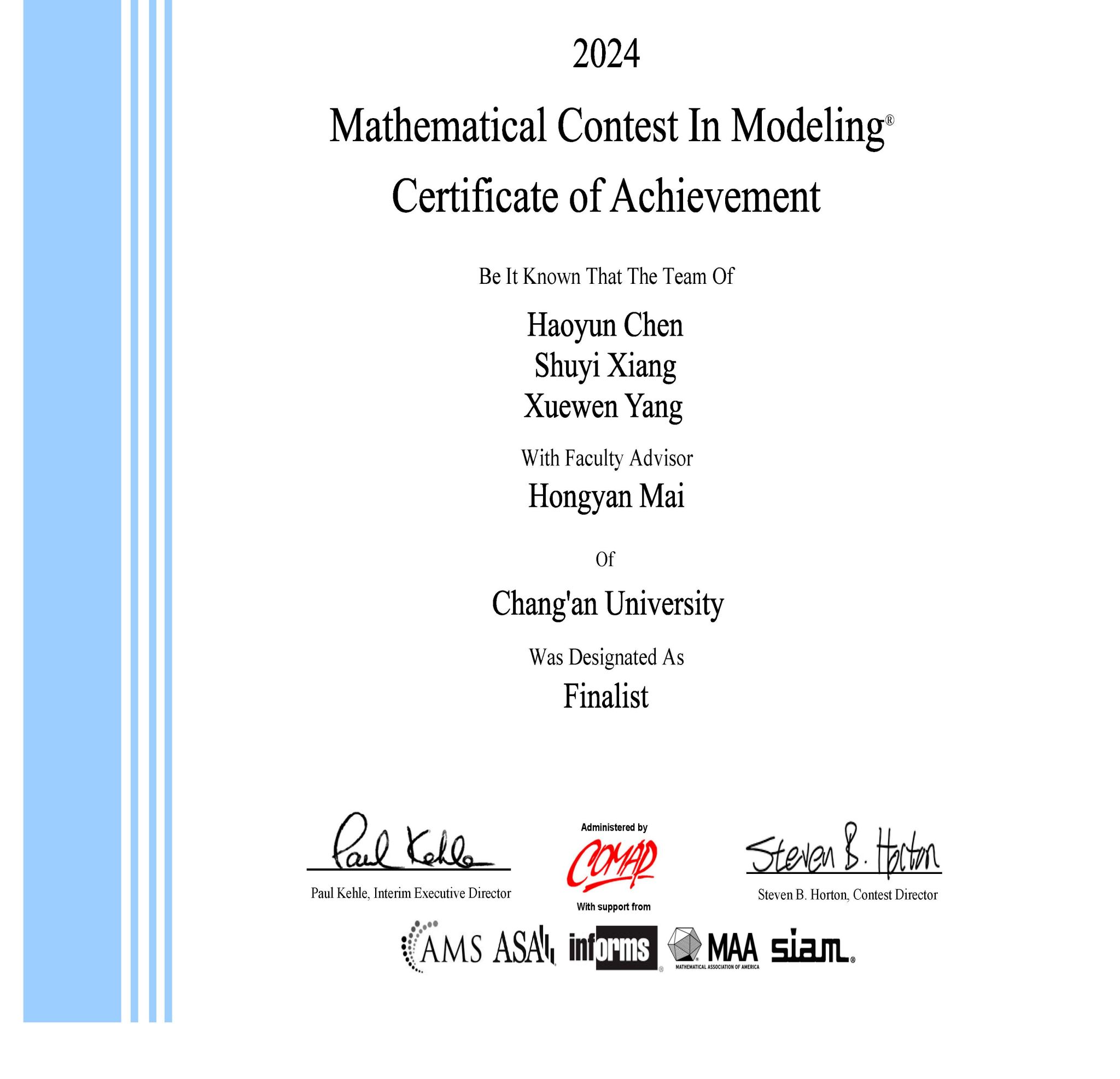 开云kaiyun官网2024年美国大学生数学建模竞赛F奖获奖证书