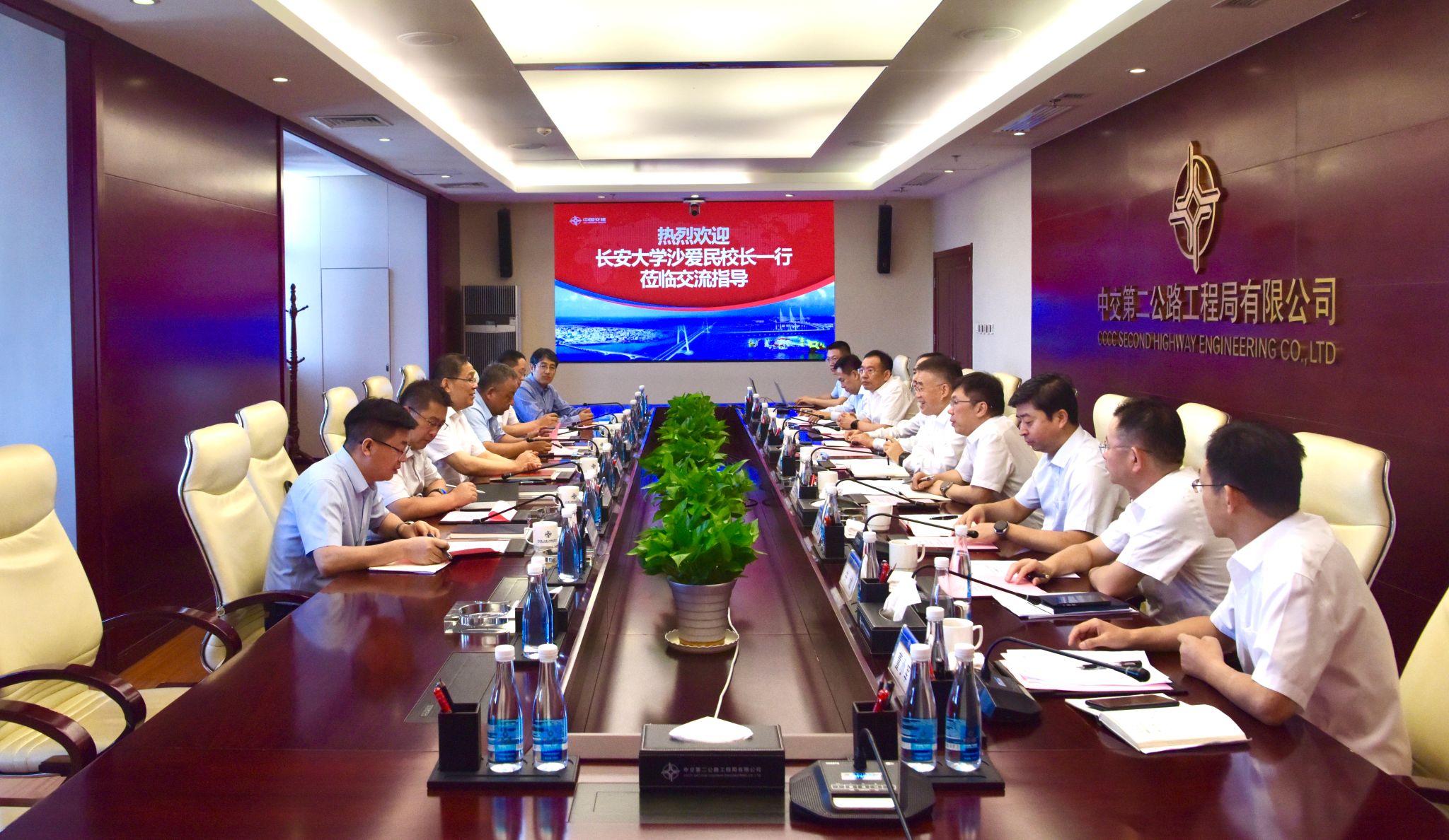 7月2日,校长沙爱民、副校长陈建勋一行赴中交第二公路工程局有限公司调研,就人才培养、科学研究等方面合作事宜进行了深入交流。中交第二公路工程局有限公司党委书记、董事长赵桢远,党委副书记、总经理庄泽亮会见沙爱民一行并进行座谈交流。