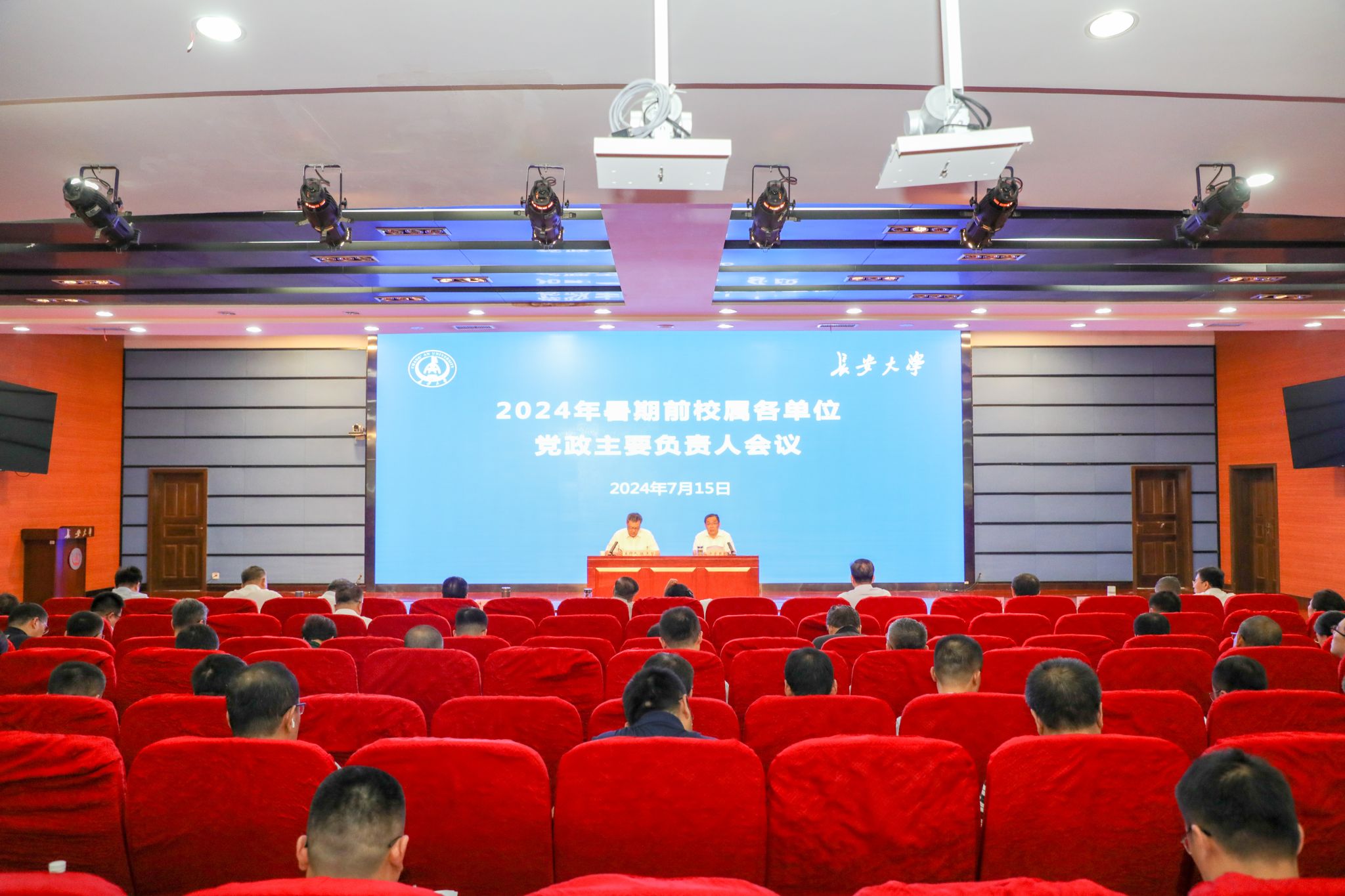 7月15日下午,学校在北校区北辰会议中心报告厅召开2024年暑期前校属各单位党政主要负责人会议。校党委书记陈志坚主持会议并讲话,校长沙爱民总结学校上半年工作,安排部署暑期重点工作。