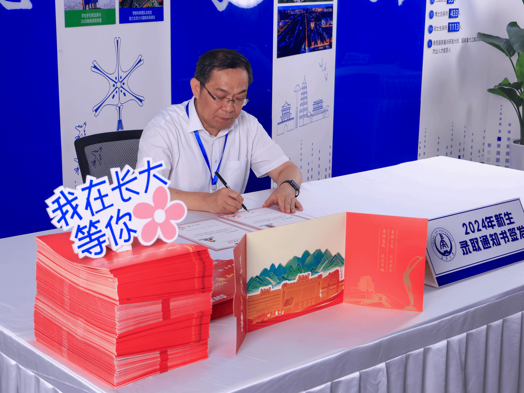招生录取现场,举行了2024年新生录取通知书签发仪式,沙爱民为学号为“001号”等新生签发亲笔签名录取通知书。