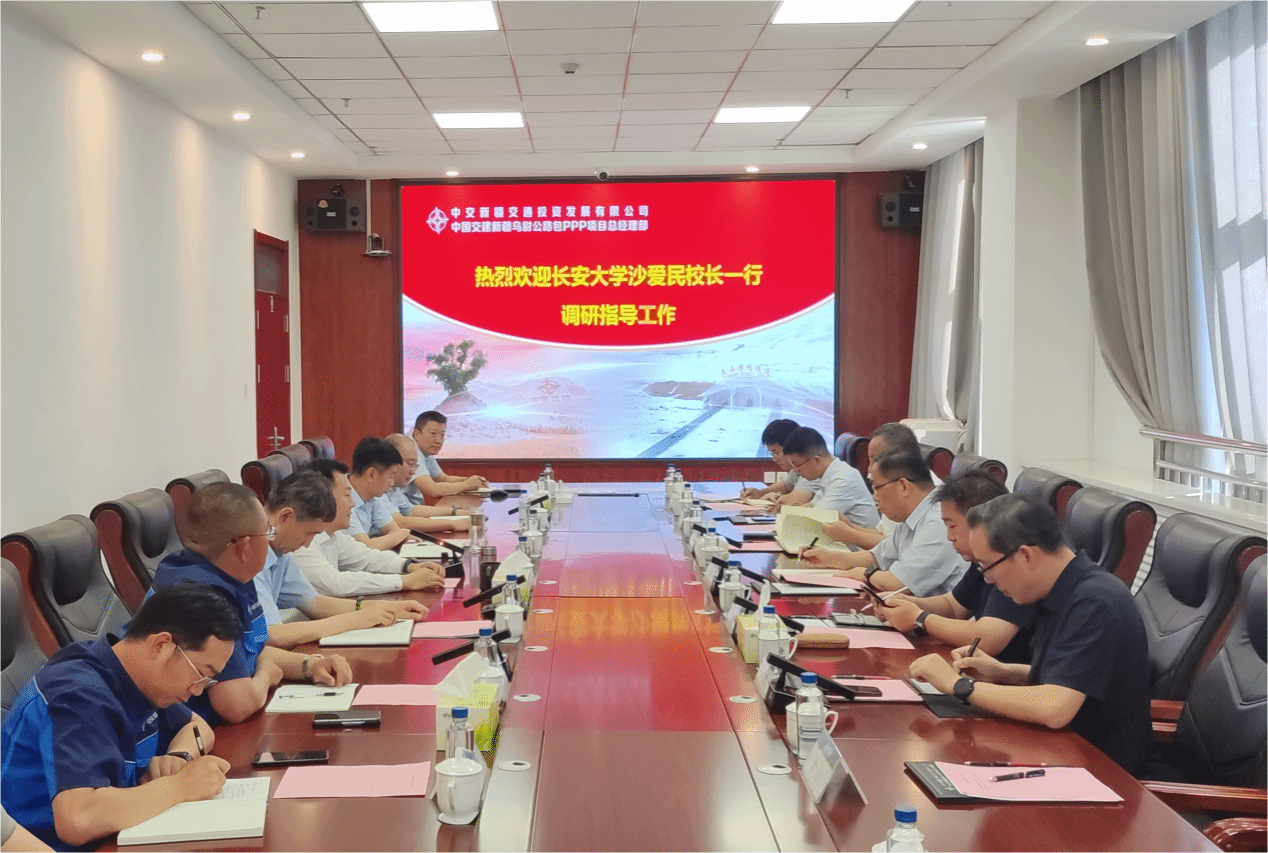 8月8日,沙爱民一行到中国交建新疆乌尉公路包PPP项目总经理部进行座谈。中交新疆交通投资发展有限公司董事长、总经理、中国交建新疆乌尉公路包PPP项目党委书记崔景川主持座谈会。崔景川对沙爱民一行来公司调研表示诚挚欢迎,他介绍了乌尉公路项目进展以及与学校联合开展科研项目情况,他表示,双方在特殊地区交通与能源融合、特长隧道建设管养等领域具有广泛的合作基础,希望双方进一步加强合作,共同打造高速公路品质工程,实现互利共赢。沙爱民介绍了近年来学校建设发展总体情况,他表示,开云kaiyun官网聚焦服务国家重大战略,立足学科特色和专业优势,主动对接重大工程建设,将持续为乌尉公路建设输送和培养人才、提供科技支撑。陈建勋介绍了学校开展有组织科研与科技创新进展。双方就建立沟通机制,落实合作内容进行了深入交流。