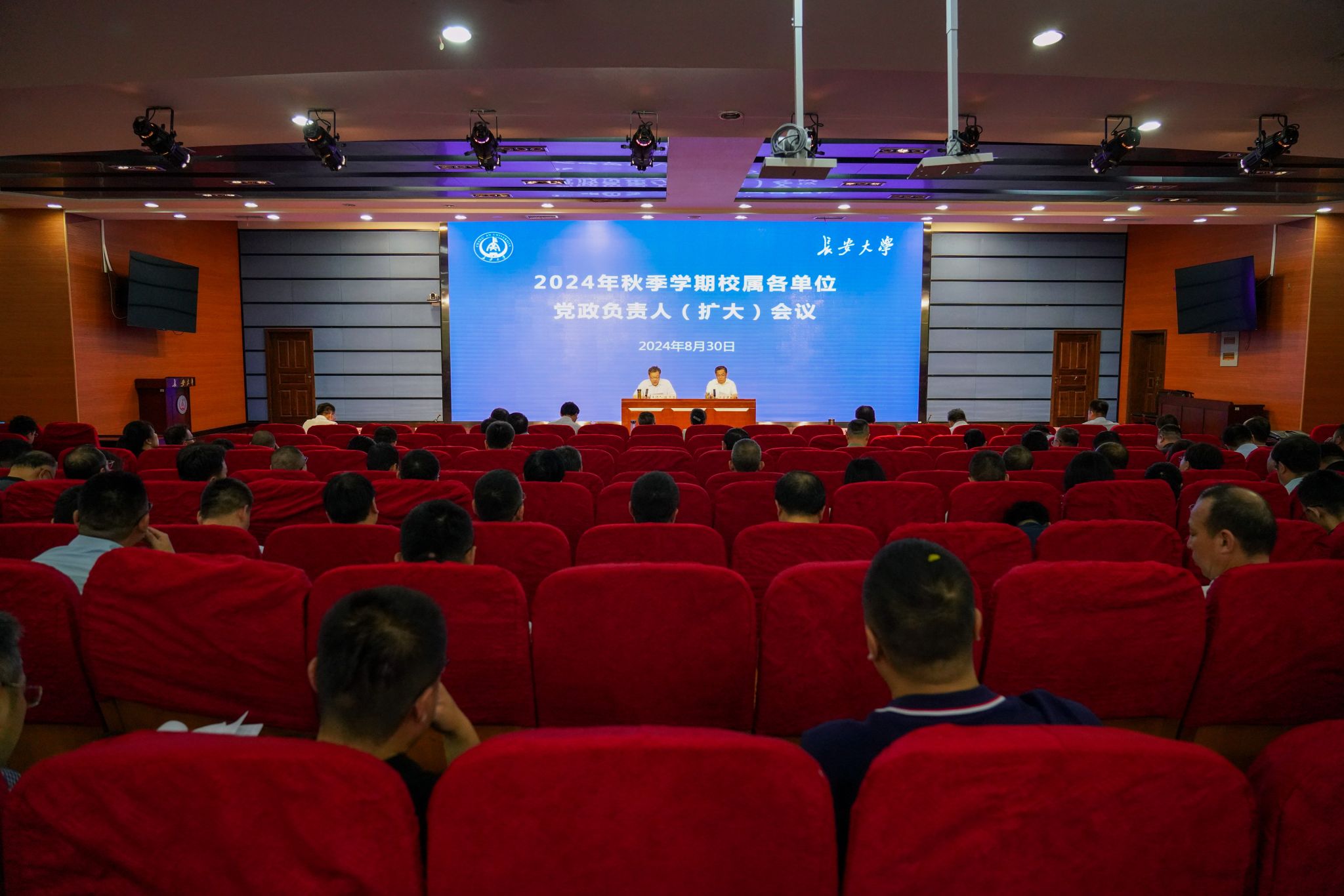 8月30日上午,学校在北校区北辰会议中心报告厅召开校属各单位党政负责人(扩大)会议,深入学习贯彻党的二十届三中全会精神,总结暑期重点工作落实情况,安排部署秋季学期重点工作。校党委书记陈志坚主持会议并讲话,校长沙爱民总结暑期主要工作并部署下半年重点工作任务。