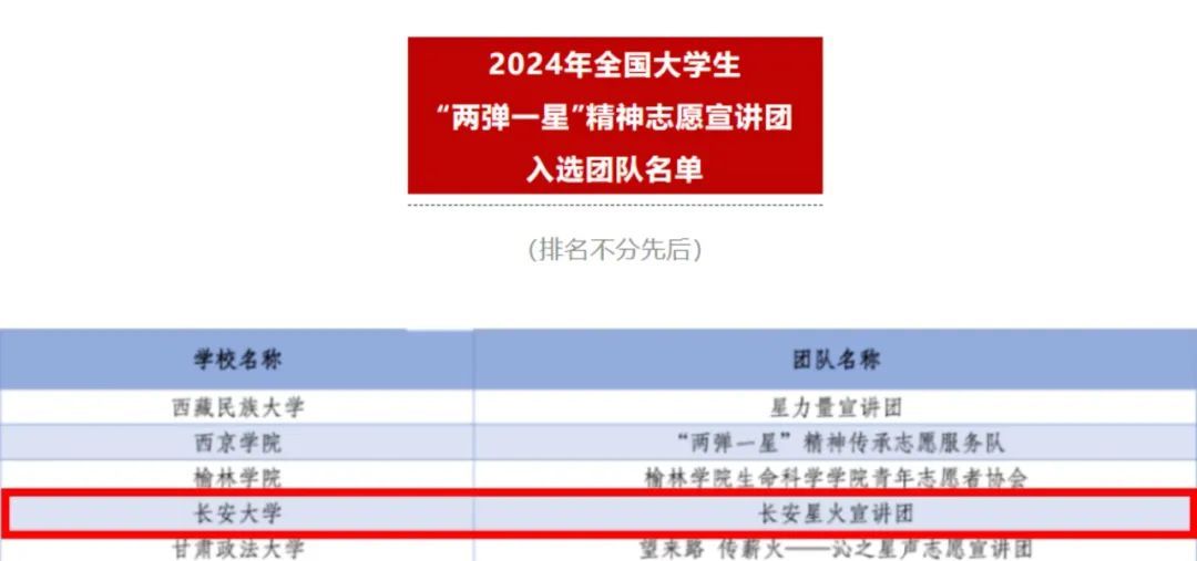 为深入学习宣传贯彻习近平新时代中国特色社会主义思想和党的二十大精神,落实“强国复兴有我”群众性主题宣传教育活动,团中央青年志愿者行动指导中心联合相关部门发布了关于遴选2024年全国大学生井冈山精神、延安精神和“两弹一星”精神志愿宣讲团的公告。开云长安星火宣讲团积极参与,最终成功入选2024年全国大学生“两弹一星”精神志愿宣讲团、延安精神志愿宣讲团。