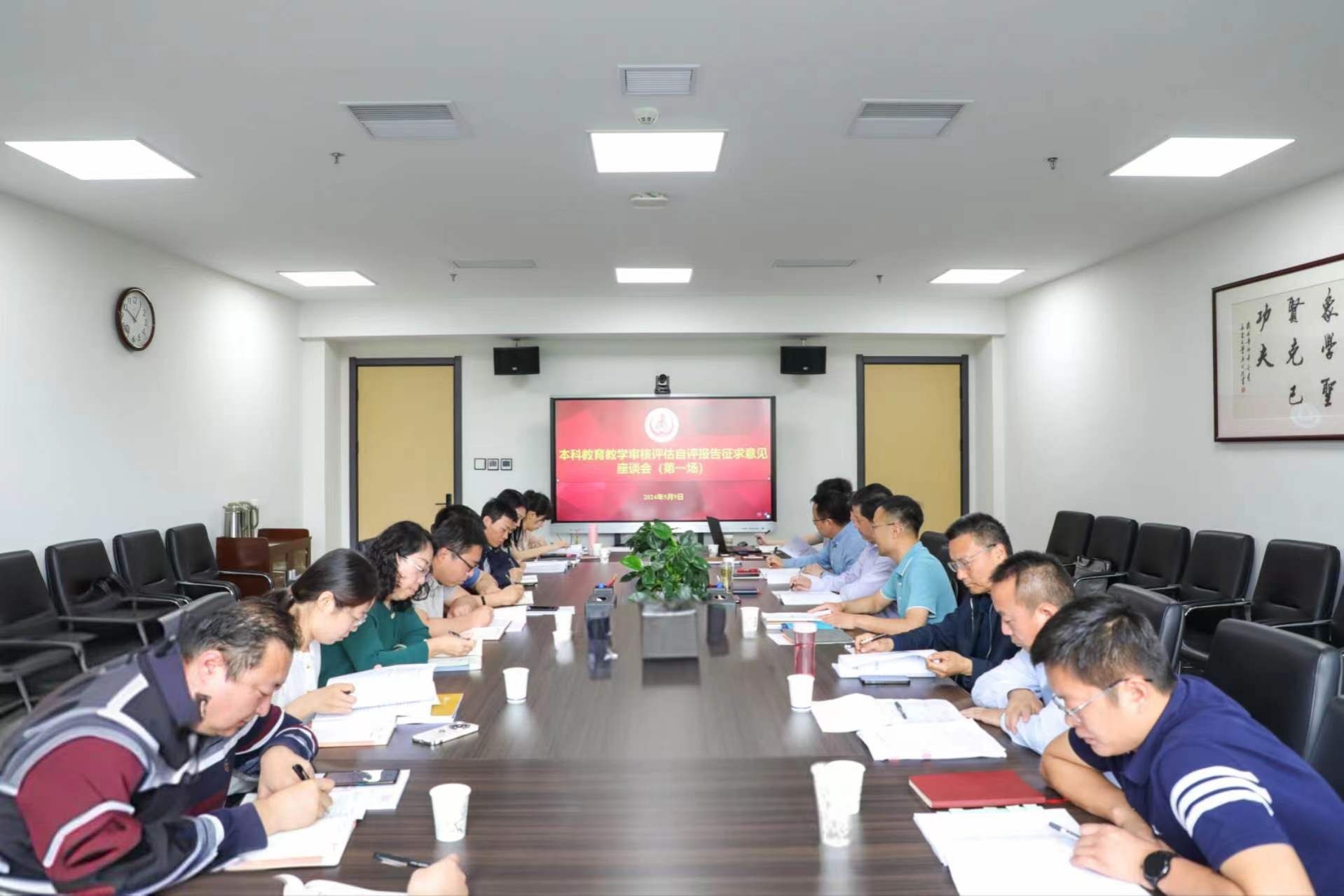 党委办公室、校长办公室、宣传部、学工部、发展规划处、教务处、教育研究与评估中心(教师发展中心)、招生就业处、人事处、社会合作处、校团委等单位主要负责人,审核评估材料专班全体工作人员参加会议。