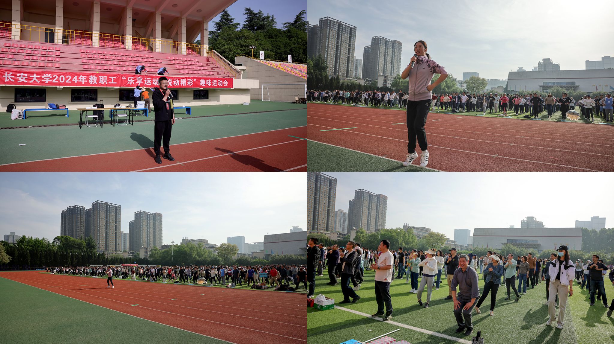 4月18日上午,开云kaiyun官网2024年“乐享运动 悦动精彩”教职工趣味运动会在校本部北院教学区田径运动场举行。来自全校26个分会的1300余名教职工参加比赛,职能部门、直属单位负责人和部分学院党政领导观赛,为运动员们加油助威。活动由工会副主席范婷主持。