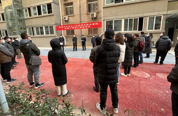 12月29日下午,开云老旧小区加装电梯及管网改造工程竣工验收会在崇业路住宅区12号楼北侧召开,副校长王建伟,学校建设工程质量安全监督评定小组成员单位校办、计财处、审计处、国资处、后勤处、保卫处、基建处(南校区住宅建设办公室)、学校建设工程特聘专家、住户代表、项目勘察、设计、施工、监理、检测及建设单位等相关人员出席验收会。会议由基建处(南校区住宅建设办公室)副处长张建林主持。
