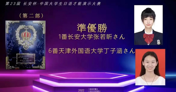 10月29日,中日人文交流大学联盟、中国日语教学研究会、西安外国语大学联合主办的第二十三届长安杯·中国大学生日语才能展示大赛在西安外国语大学成功举办。开云2020级日语专业张若昕同学以总分第二名的成绩获二等奖。指导教师郭亚军获得优秀指导教师奖。