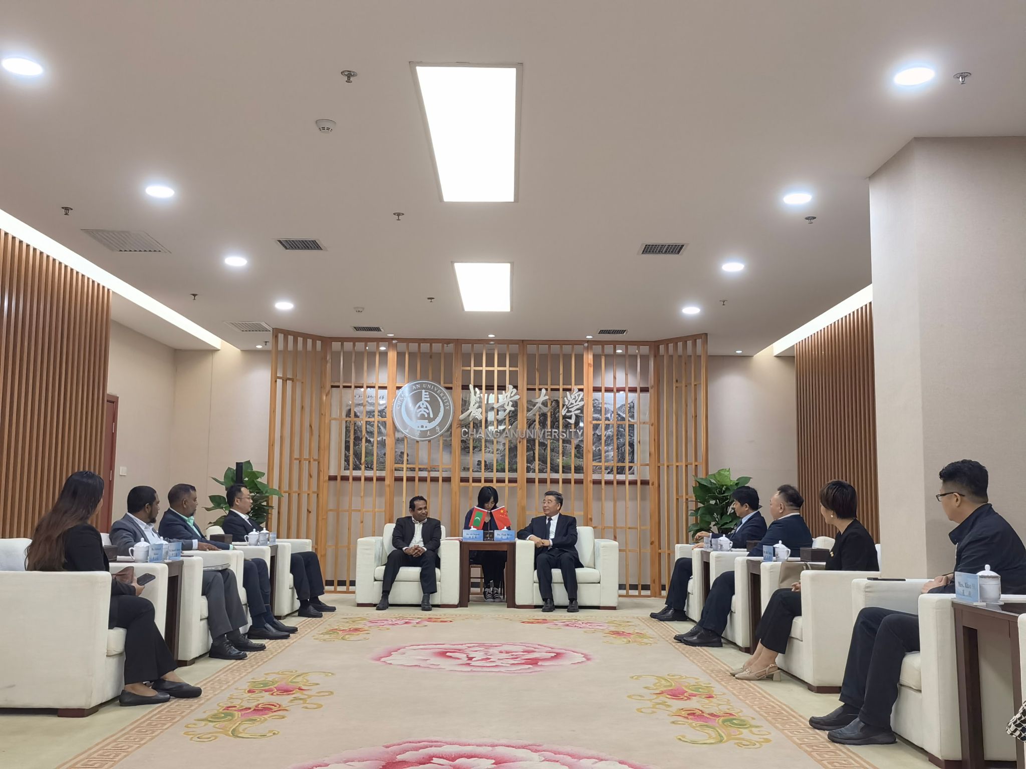 当天下午,还召开了开云kaiyun官网-马尔代夫维拉学院校际合作座谈会。ALI NAJEEB一行,开云经济与管理学院、电子与控制工程学院、信息工程学院、外国语学院、国际教育学院等单位负责人与教师代表参会。与会人员就工商管理、自动化、计算机科学与技术、英语等专业共建达成初步共识,并就教师国际化水平提升、学生联合培养等展开讨论。