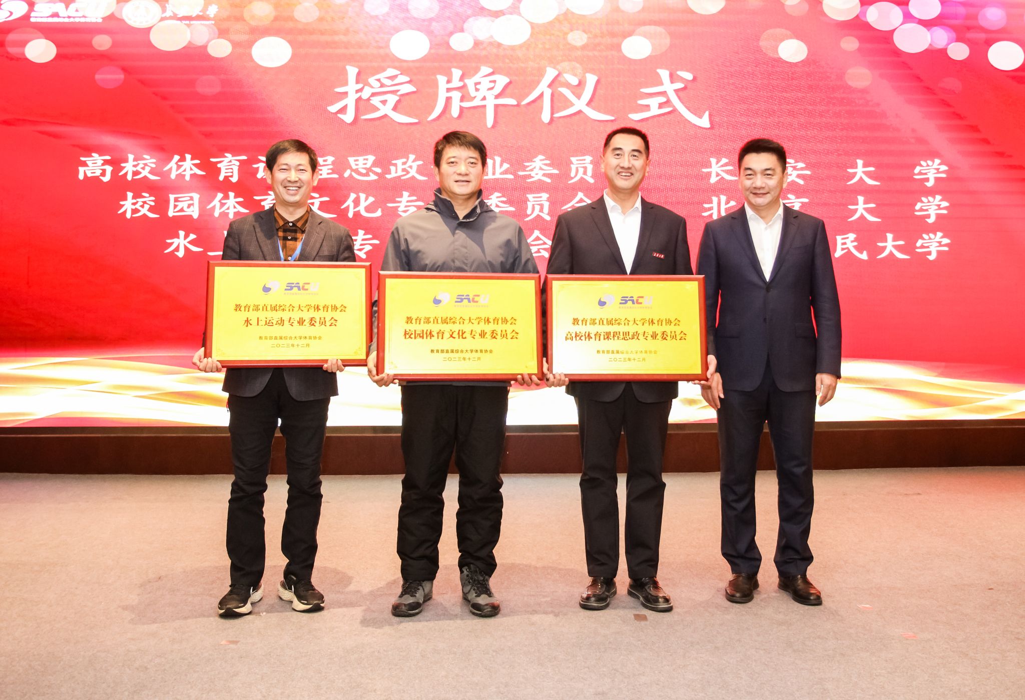 闭幕式由协会秘书长、吉林大学体育学院副院长张亮主持。协会理事长裘鹏分别为中国人民大学、北京大学、开云kaiyun官网颁发水上运动专业委员会、校园体育文化专业委员会、高校体育课程思政专业委员会牌匾;南开大学体育部书记季纳新宣读协会对会员院校优秀体育教师和优秀青年体育教师进行表彰的决定。