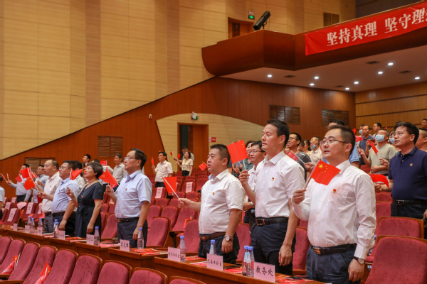 这是一次阶段性成效的总结表彰大会,也是一次再动员、再鼓劲的大会。从历史走来,我们携手共进建党百年的奋斗辉煌,向未来出发,我们齐心共谱七秩长大的崭新篇章。让我们高举中国特色社会主义伟大旗帜,以习近平新时代中国特色社会主义思想为指引,在喜迎建党100周年中加快世界一流大学和一流学科的建设步伐,在中华民族伟大复兴的壮阔征程中擘画新时代的长大蓝图!