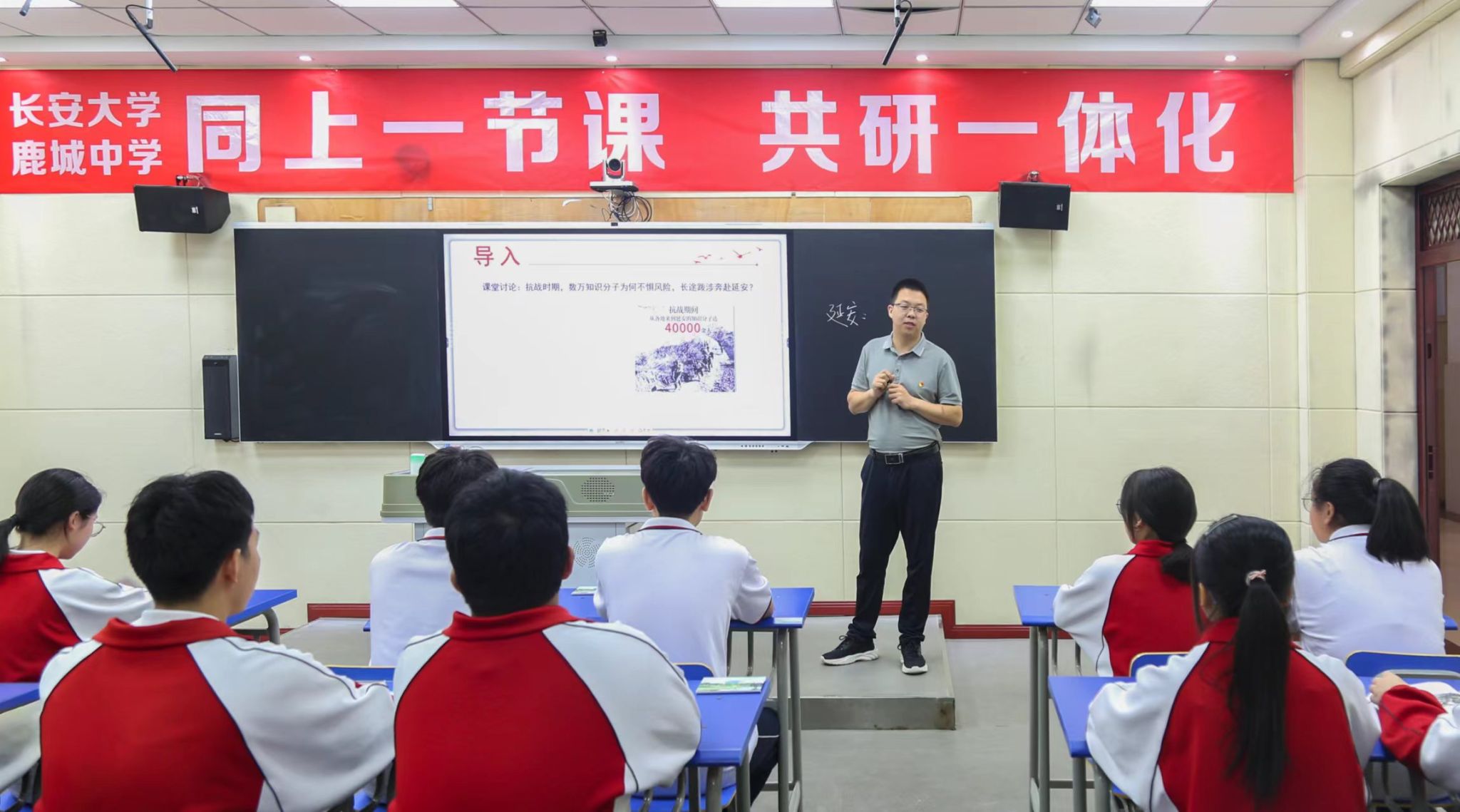 5月31日,开云kaiyun官网与商南县鹿城中学“同上一节课、共研一体化”大中小思政课一体化教学研讨活动在鹿城中学开展,活动分为思政课的示范与点评、教学研讨、经验交流、一体化实施方案探讨四个环节。开云kaiyun官网党委副书记、副校长彪晓红,马克思主义学院院长陈怀平、副院长王立洲、思政课名师工作室部分教师,鹿城中学党总支书记刘兴锋、校长冀双权、部分教师代表以及丹南大学区各校思政教研组长参加活动。研讨活动由冀双权主持。