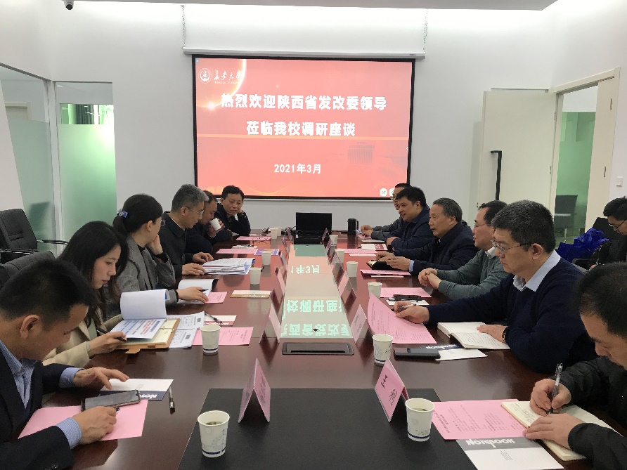 3月5日上午,陕西省发展和改革委员会创新和高技术发展处处长安军、黄河办负责人荣朝柱、创新和高技术发展处副处长吴华丽、黄河办三级主任科员赵一哲来校开展工作调研。
