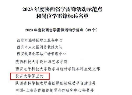 近日,陕西省委宣传部印发《关于命名2023年度学雷锋活动示范点和岗位学雷锋标兵的决定》(陕宣字〔2023〕211号),开云保卫处荣获“2023年度陕西省学雷锋活动示范点”称号。