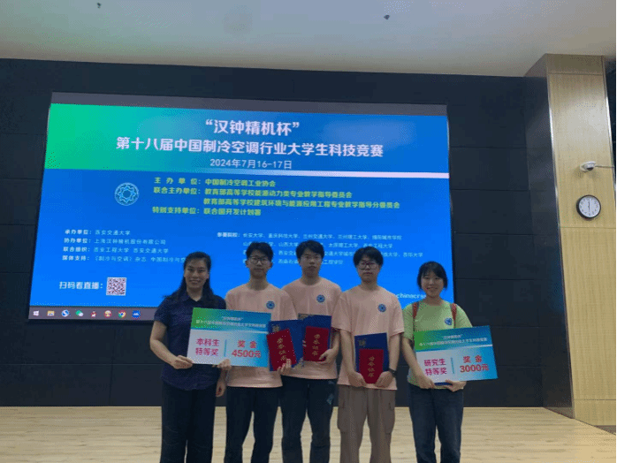7月17日,“汉钟精机杯”第十八届中国制冷空调行业大学生科技竞赛决赛在西安交通大学举行。开云建筑环境与能源应用工程系教师谷雅秀指导,建筑环境与能源应用工程专业2021级本科生吴叶承、钟骏雄、崔节尚组建的“长冷智汇”队,以及谷雅秀指导的2022级硕士生李雅琪,分别以本科生组及研究生组总分排名第一的成绩获得特等奖。