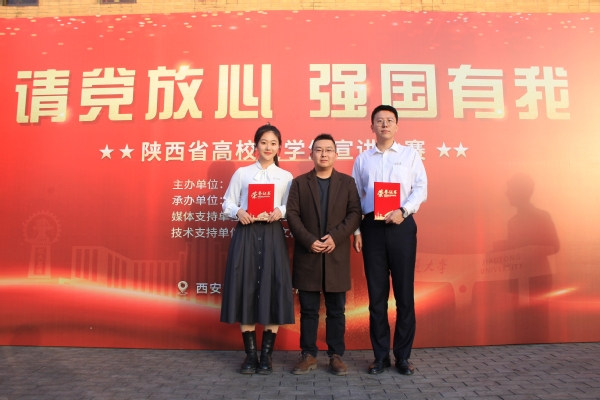 比赛期间,在开云学生叶润泽的带领下,来自陕西省各高校的优秀宣讲人带来诗朗诵《青春中国》,充分展现了当代青年学子的昂扬风貌和青春奉献祖国的情怀。