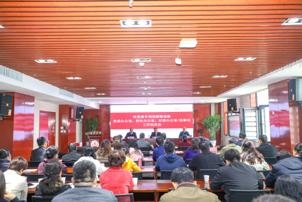 专项巡察组全体成员,党委办公室、校长办公室、纪委办公室/监察处全体教职工参加了动员会。