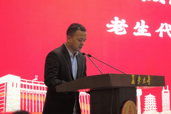 在校生代表、公路学院2020级尼泊尔籍硕士生卢贝思在发言时表示,要树立明确目标、积极参与实践、团结友爱同学,实现青春梦想。