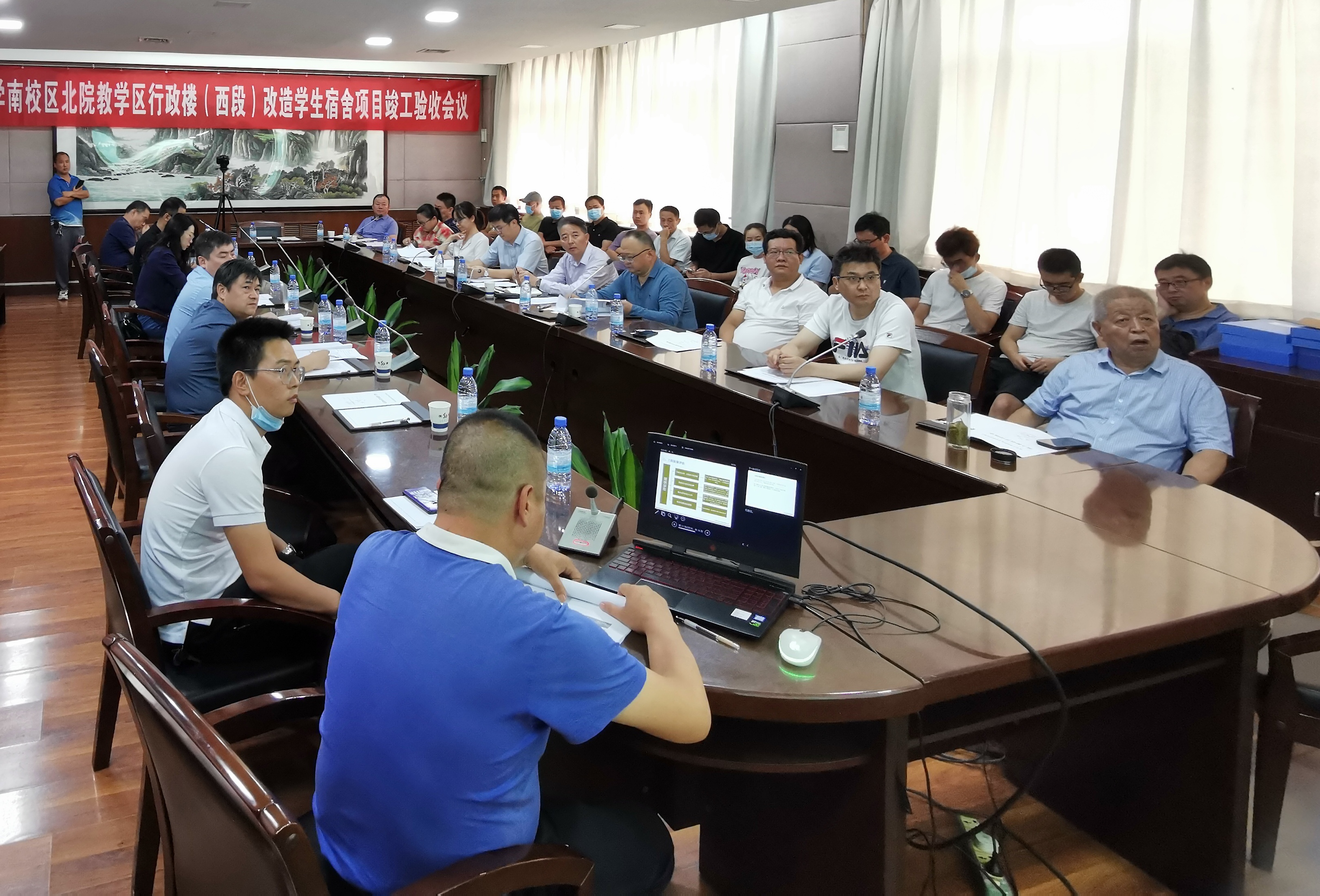 8月26日下午,南校区北院教学区行政楼(西段)改造学生宿舍项目竣工验收会召开。副校长朱杰君,校办、学工部、计财处、审计处、国资处、后勤处、保卫处、基建处等相关单位负责人,项目消防、室内空气质量等检测单位代表,设计、总承包及监理单位等参建方代表共50余人参加会议。验收会由基建处副处长孟振江主持。