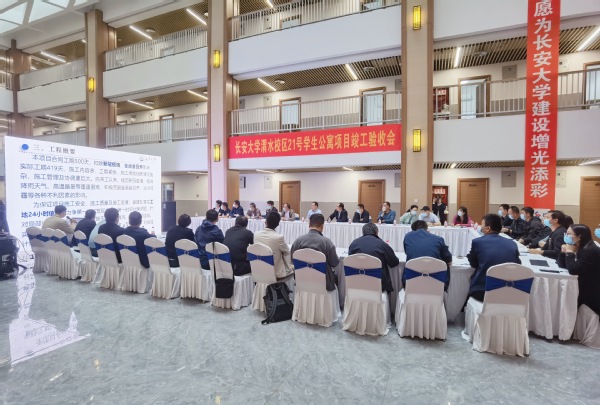 验收会议包括会议汇报、实体检查验收、资料检查验收三个环节。验收会上,基建处(南校区住宅建设办公室)就项目整体情况、建设难点、项目亮点及施工管理做了汇报,施工单位陕西建工集团就项目施工自评报告做了详细汇报,监理单位陕西华信项目管理有限公司就施工过程监理及工程质量评估报告进行了详细汇报。验收小组对大楼屋面、电梯机房、标准楼层房间、楼层淋浴间、热水间、洗衣间、示范性园区学生公共活动空间、自习室、健身区、创咖厅、负一层监控室、供水设备间、配电室及室外工程及绿化等进行了详细检查,并在屋面对消防系统进行了实际喷水演示检查,资料检查组对工程建设形成的资料进行了详细检查。结合工程实体验收和资料检查情况,与会单位分别发表验收意见,一致认为项目达到国家验收标准,同意工程质量为合格,项目通过竣工验收。石瑞平代表学校建设工程质量安全监督评定小组宣读项目竣工验收结论。