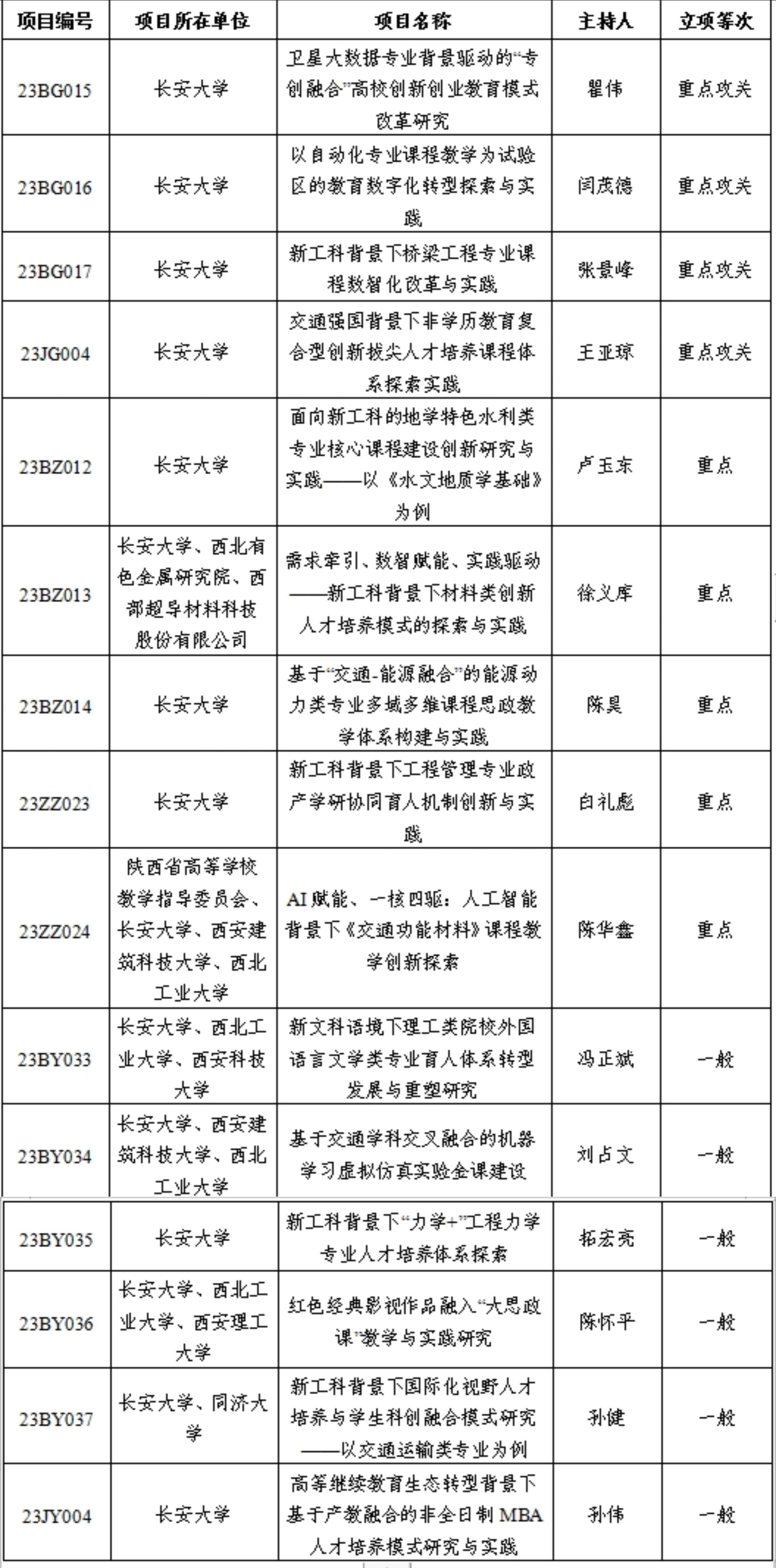 2023年度陕西本科和高等继续教育教学改革研究项目名单