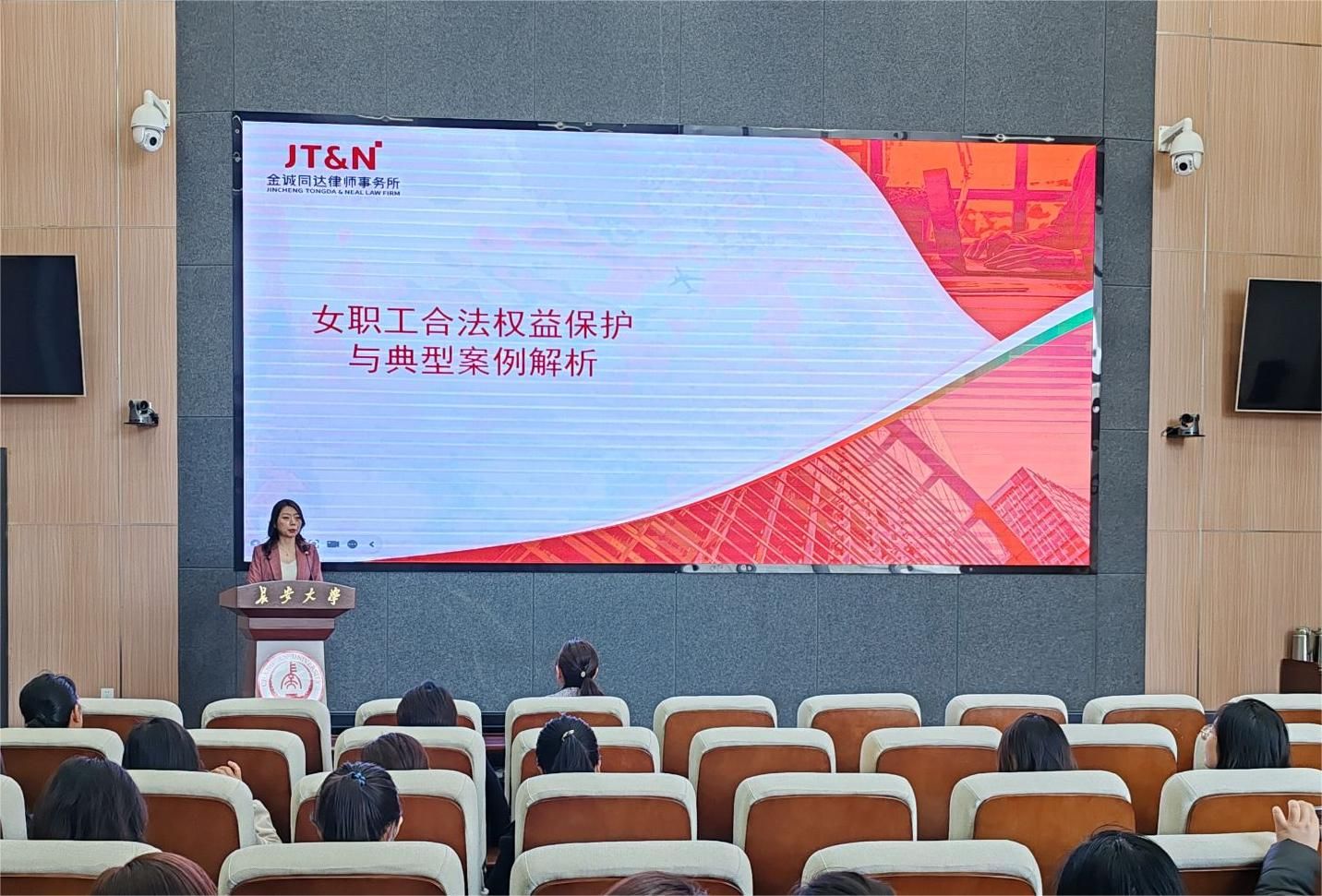 龚健律师以《女职工合法权益保护与典型案例解析》为题,结合自身多年的实践经验,以详实的数据为现场的女教职工们做了一场精彩的报告。龚律师紧密围绕女职工合法权益,从政治权利、生育权利、劳动权利、人身权利四个方面展开讲座,尤其就女职工关注的热点问题进行了深入剖析,如孕期、产期、哺乳期女职工的特殊保护,女职工在职业发展中的平等权益等。她通过丰富的典型案例,生动地展示了女职工在维护自身权益时所面临的困境和挑战,以及如何通过法律途径解决这些问题。