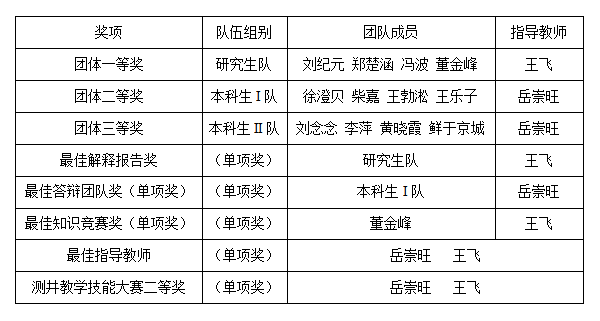 开云参加第七届全国大学生测井技能大赛获奖情况