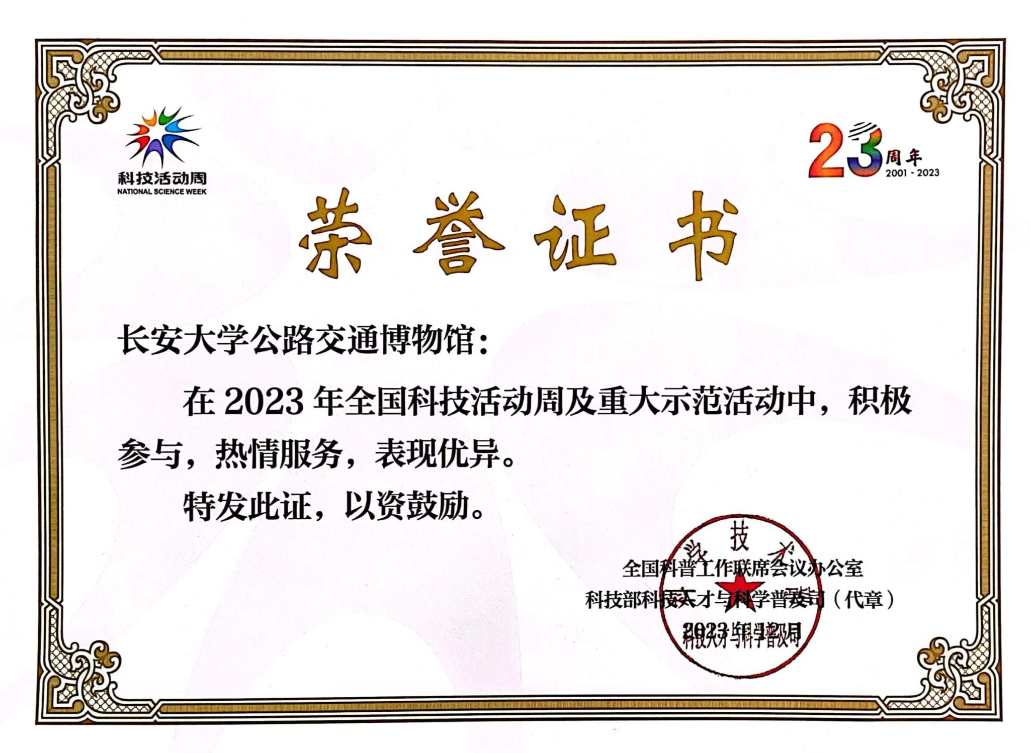 “科技活动周”是2001年经国务院批复设立,由科技部会同中宣部、中国科协等部门和单位组成组委会,每年在全国范围内组织实施的大规模群众性科学技术活动,目前已成功举办23届。公路交通博物馆将珍惜荣誉、再创佳绩,进一步丰富展陈内容、创新传播方式,营造浓厚科普氛围,为高质量发挥博物馆的科普价值贡献力量。