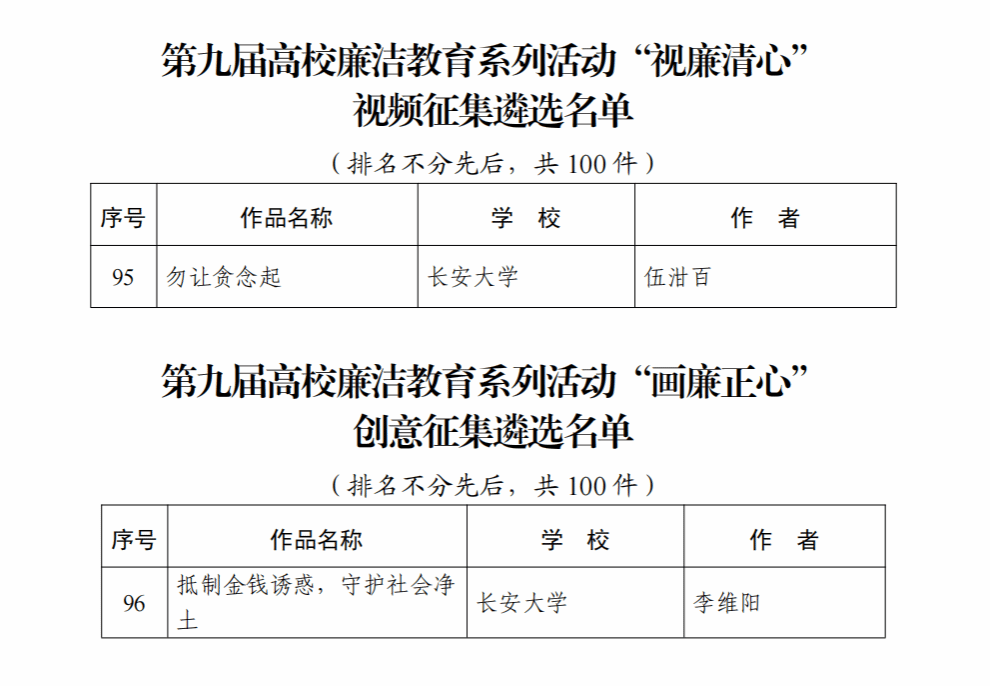 近日,教育部公布了第九届高校廉洁教育系列活动评选结果,开云两项作品入选。其中,《勿让贪念起》入选“视廉清心”视频征集全国百篇,《抵制金钱诱惑,守护社会净土》入选“画廉正心”创意征集全国百篇。