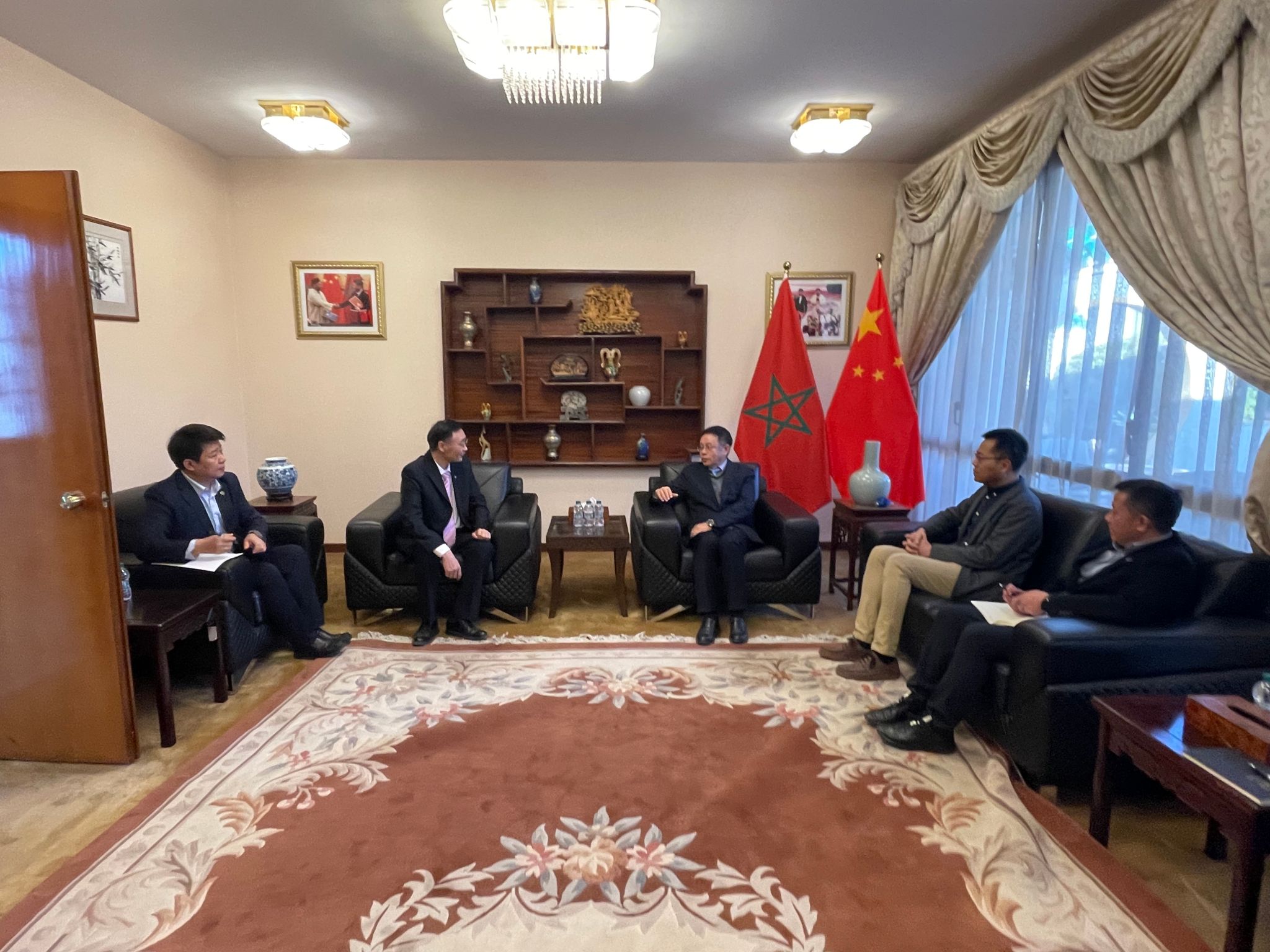 在摩洛哥访问期间,代表团拜会了驻摩洛哥大使李昌林,并先后与摩洛哥苏丹穆雷·斯利曼大学校长Khalid Mehdi及相关学院院长、哈桑二世大学孔子学院中方院长郑琼、摩洛哥FW留学中心首席执行官Abdelhaq BOUKHALF会谈。在与苏丹穆雷·斯利曼大学的座谈中,双方表示希望从促进土木工程、人工智能等领域科技创新与技术转移、加强双方青年学者培训与交流、推动双方硕博士高水平学生交流、促进中摩科技合作国际化发展、建立联合实验室与研发中心等五个方面探索开展合作,并签署了战略合作协议。期间,代表团还与中铁二十局摩洛哥子公司总经理胡广华、中国路桥摩洛哥子公司总经理严斌就校企合作相关领域工作展开讨论。