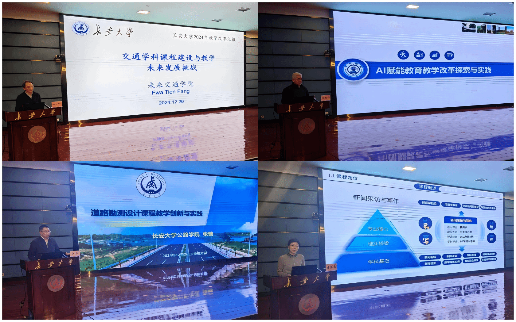 大会专题报告阶段,教务处处长张圣忠作学校课程建设与改革专题工作报告,西安交通大学教师教学发展中心主任徐忠锋教授作题为《数字化和智能化赋能课程建设》专题报告;分享交流阶段,Fwa Tien Fang院士围绕未来交通学院“课程建设与探索”进行经验分享,公路学院张驰教授、人文学院崔慎之副教授围绕主讲课程的教学创新与实践进行经验交流。