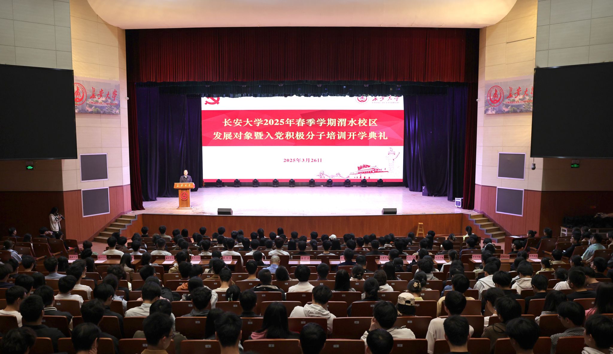 学工部、校团委等部门负责人,各学院(系)主管学生发展党员工作的副书记,党校全体工作人员,渭水校区发展党员培训班全体学员参加典礼。