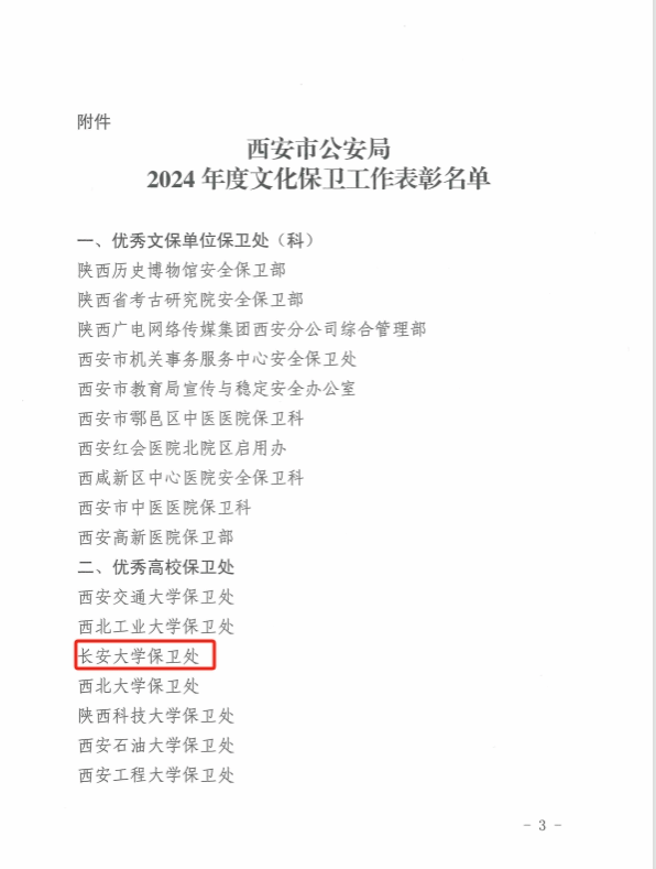近日,西安市公安局印发《关于表彰2024年度文化保卫工作优秀集体和优秀个人的决定》,表彰西安市文保系统各级保卫组织和保卫干部团结协作、恪尽职守、勇于担当,积极作为,在守牢安全防线、突发事件处置等方面做出的突出贡献。