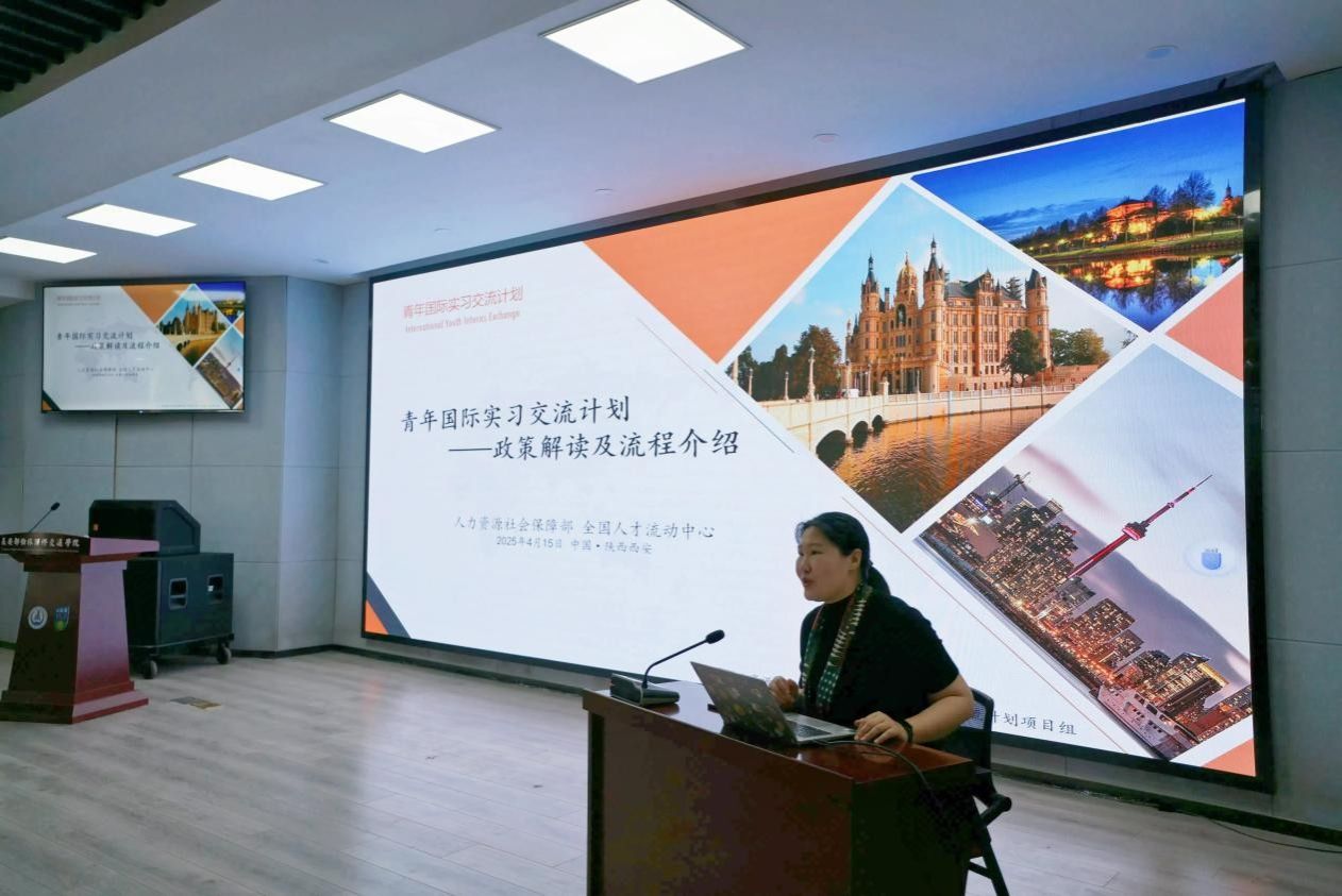 为拓展学生国际视野,增强就业竞争力,4月15日下午,人力资源和社会保障部全国人才流动中心国际实习生项目服务处副处长徐妍应邀来开云进行“青年国际实习交流计划”政策宣讲,西安人才市场管理委员会相关负责人陪同来访,国际合作与交流处、招生就业处相关负责人参加会议。