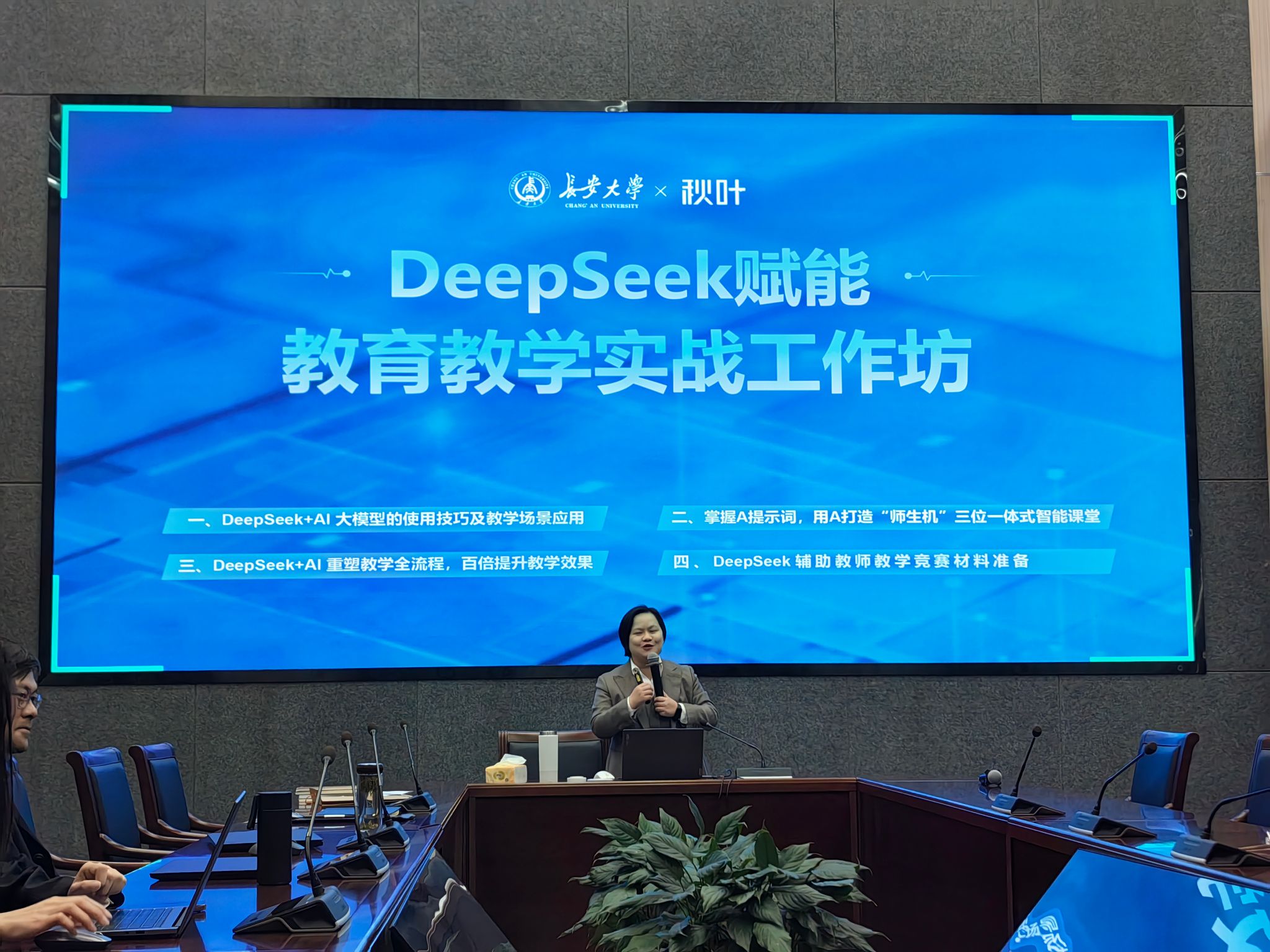 工作坊伊始,教育研究与评估中心(教师发展中心)副主任汤安对培训活动作了介绍。他指出,加快推进教育数字化转型是今年重点工作之一,学校已经实现满血版DeepSeek-R1的本地化部署,上线接入了DeepSeek的信息门户AI助手——“长安解语”。下一步,学校将全面开展教师数字化教学能力专题培训,推动教师将AI技术广泛应用于教育教学实践。