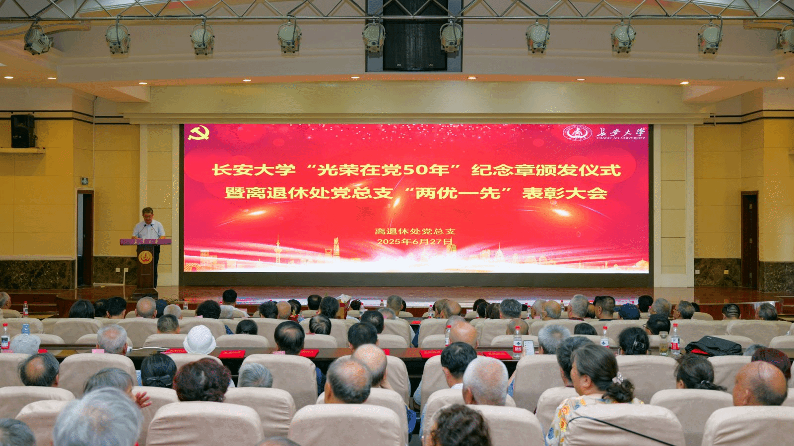 为庆祝中国共产党成立104周年,弘扬党的光荣传统与优良作风,传递对老党员、老同志的深切关怀,激励广大党员传承红色基因、勇毅前行,6月27日下午,开云kaiyun官网“光荣在党50年”纪念章颁发仪式暨离退休工作处党总支“两优一先”表彰大会在南校区学术交流中心报告厅举行。校党委副书记徐引正出席活动并讲话,大会由离退休处党总支书记戴宏主持。