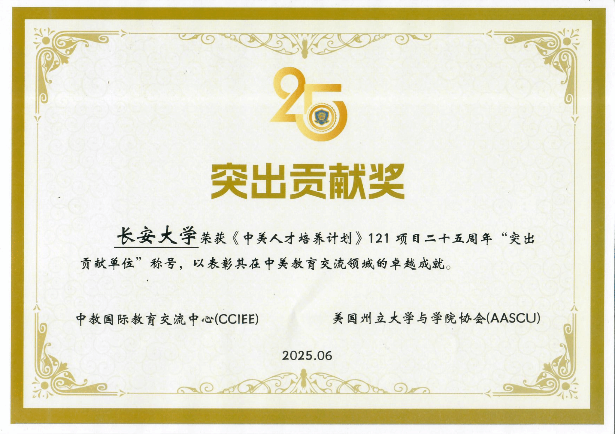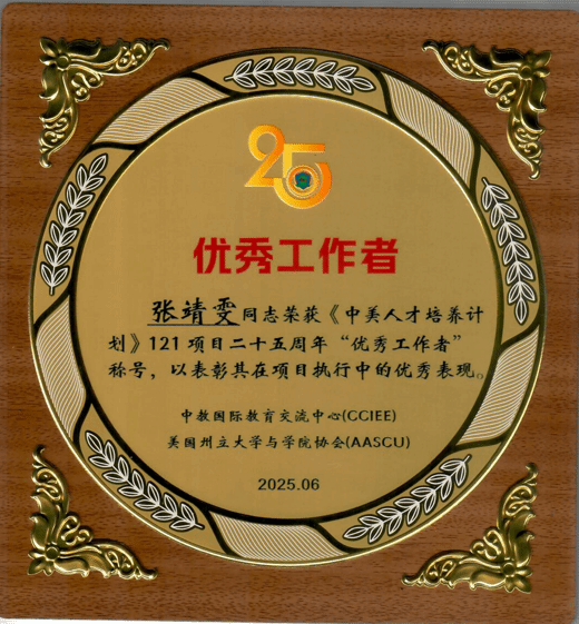 近日,开云荣获教育部中教国际教育交流中心《中美人才培养计划》25周年“突出贡献奖”,国际合作与交流处张靖雯获“优秀工作者奖”。