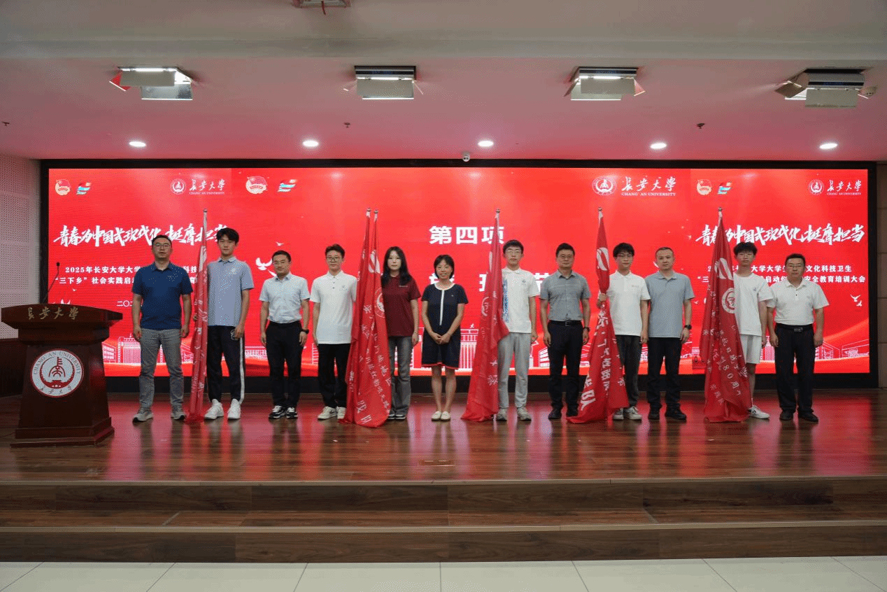 7月11日下午,学校2025年大学生暑期文化科技卫生“三下乡”社会实践启动仪式暨安全教育培训大会在北校区长安文化艺术中心三楼多功能厅举行。学校宣传部、学工部、教务处、研工部、招就处等部门相关负责人,校团委全体干部、各分团委书记,社会实践立项团队指导教师及队员代表参加大会。