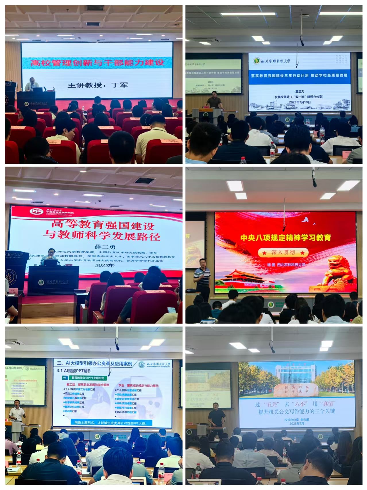 培训邀请北京师范大学薛二勇教授,陕西省委党校丁军教授,西北农林科技大学刘斌教授、夏显力教授等专家学者讲授《大力弘扬教育家精神,加快教育强国建设》《落实教育强国建设三年行动计划,推动学校高质量发展》《人工智能在高校管理中的应用》等课程,精准对接干部工作需求,助力青年干部切实提升业务能力与管理水平。