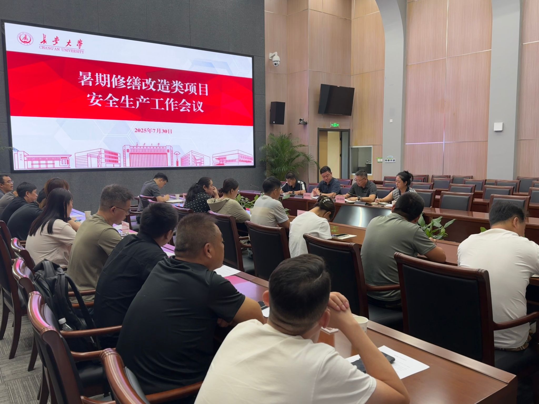 7月30日上午,业务归口后勤管理处的2025年暑期修缮改造类项目安全生产工作会议在师生服务大厅第一报告厅召开。后勤管理处、学生工作部、武装部、医院、艺术教育中心、继续教育学院等具体项目实施校内负责部门以及承担施工的公司负责人参加会议。