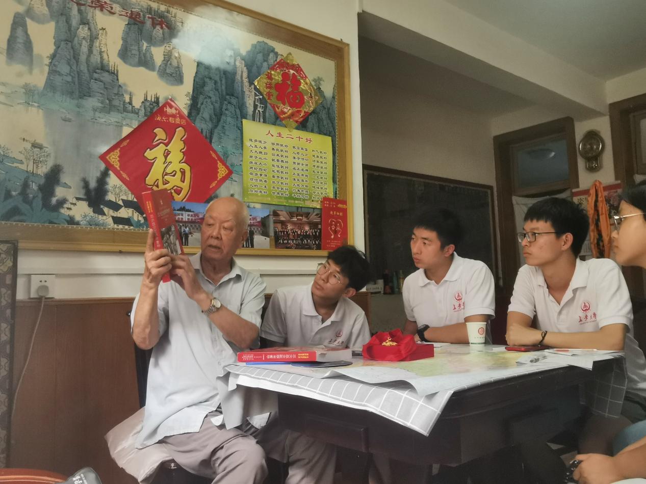 当日下午,实践队前往退休教师惠志刚的家中,聆听了一堂别开生面的党课。惠志刚老师于1963年入党,党龄已长达58年。短短一个多小时的党史课,让实践队员们受益匪浅。以惠志刚为代表的老党员对青年人的殷切期望,使得队员们更加明确了自己作为社会主义接班人肩上的使命担当,提升了奋力前进的动力。