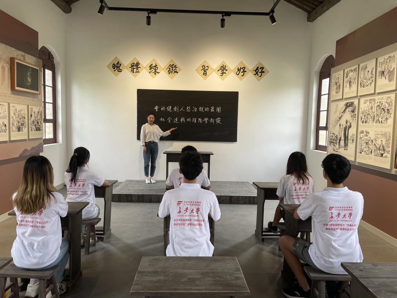 为更加深刻地感受习仲勋同志当年生活坏境。实践队员前往庄里镇的立诚中学参观学习,立诚中学是富平最早的党团组织的发源地,也是革命思想的启蒙之处。在副校长李老师的带领下,实践队来到了古色古香的陈列馆、屹立百年的藏书楼和习仲勋同志早年求学的教室,这些保存至今的建筑向实践队展现出了革命先辈在艰苦环境中坚持革命的高大伟岸的形象,同时,实践队员也学习了立诚中学“阐发新的学说,陶冶理想的人格,创造健全的社会”的校训,领悟到了人才培养对国家振兴的积极作用。