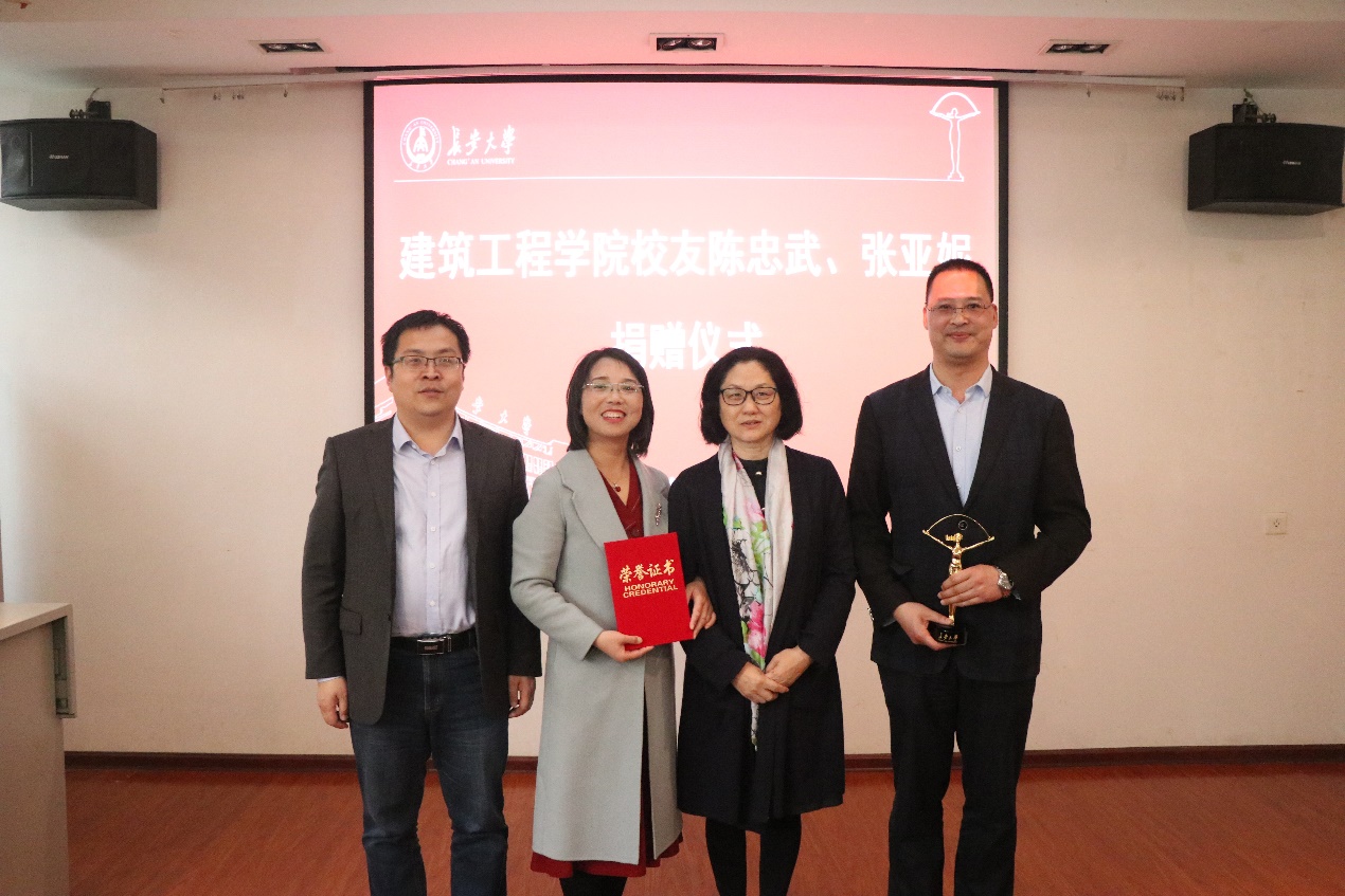 3月16日下午,建工学院在学院第一会议室举行陈忠武、张亚妮校友捐赠仪式,院长邢国华、副书记兼副院长闫秀萍参加捐赠仪式。