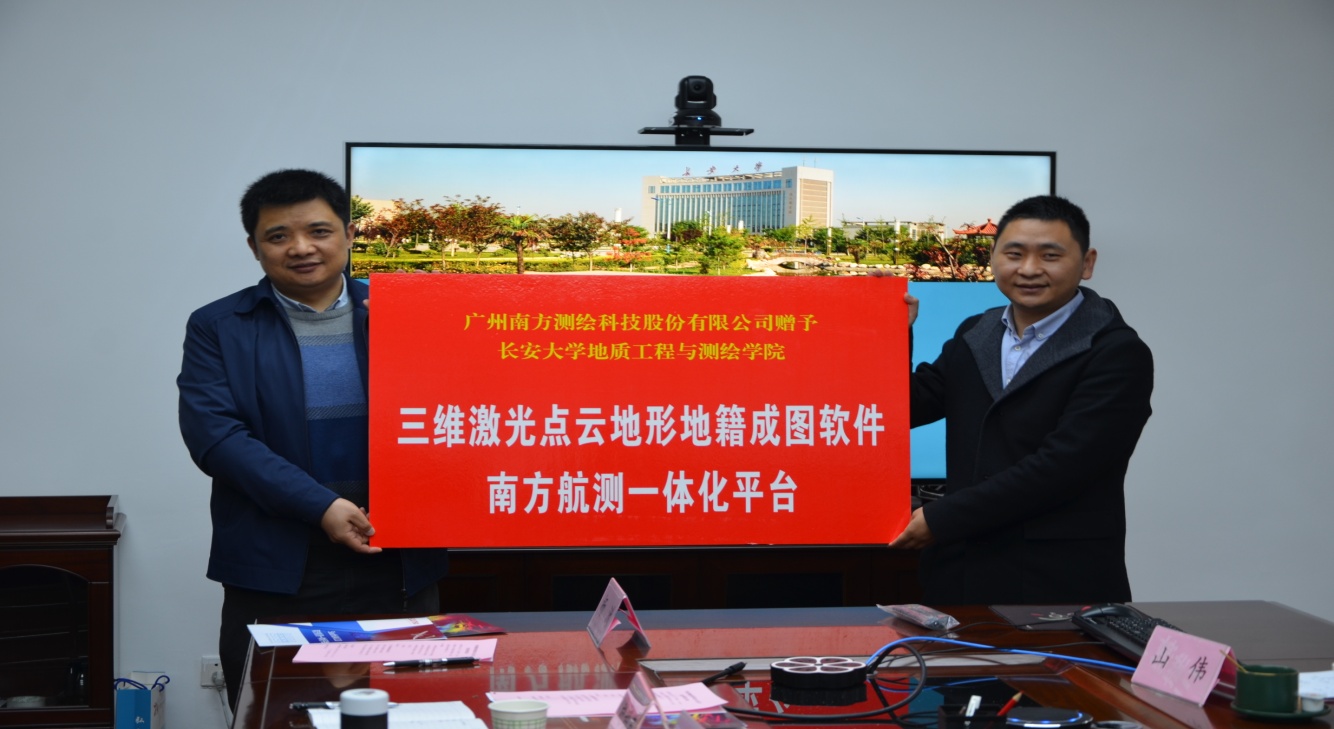 随后,李振洪代表学院接受南方测绘科技公司的软件平台捐赠。