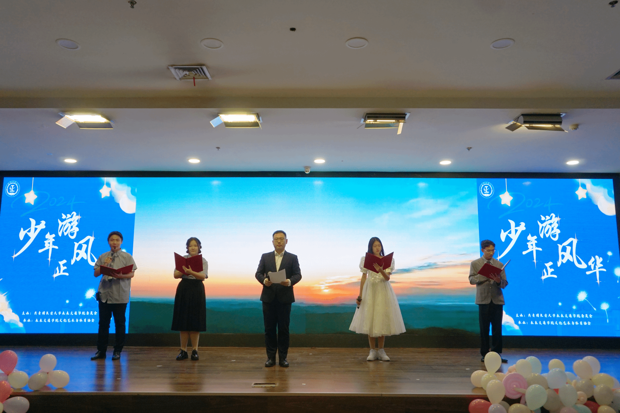 晚会在充满青春活力的节目《像你这样的朋友》中拉开序幕;《若是月亮还没来》的歌声如同夜空中最亮的星辰,照亮了每一个听众的心房;《如愿》在钢琴和小提琴的悠扬合奏中缓缓展开;《鼓楼》《是你》《找自己》歌曲联唱精彩纷呈;Sally face乐队带来《爱的飞行日记》和《24 Hr Drive-Theu》,歌曲充满活力和激情。在晚会的后半程,兼职辅导员戴汐涓和2024级本科生徐子婷共同带来的歌舞节目《生活倒影》深深打动了在场观众;新生辅导员刘志兴领诵的《一起向未来》表达了对未来的无限憧憬和坚定信念,热情洋溢的歌声和充满活力的舞步展现了青春的朝气和对未来的无限期待。