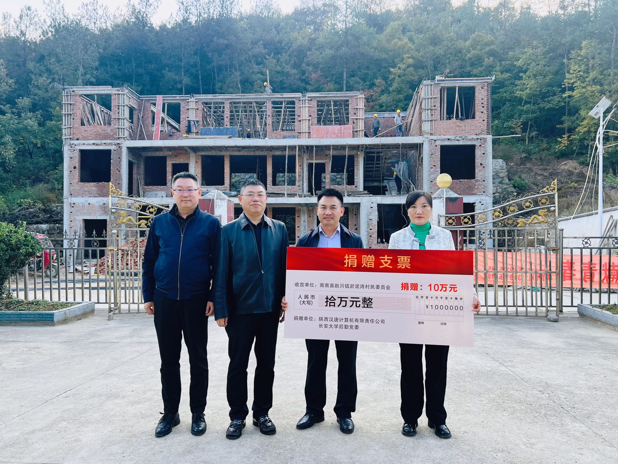 为支持淤泥湾村村部建设,后勤党委充分发挥桥梁纽带作用,联系爱心企业陕西汉唐计算机有限责任公司参与乡村振兴事业,该企业以高度的社会责任感,积极响应乡村振兴号召,捐款10万元,为淤泥湾村村部建设提供了有力的资金支持。