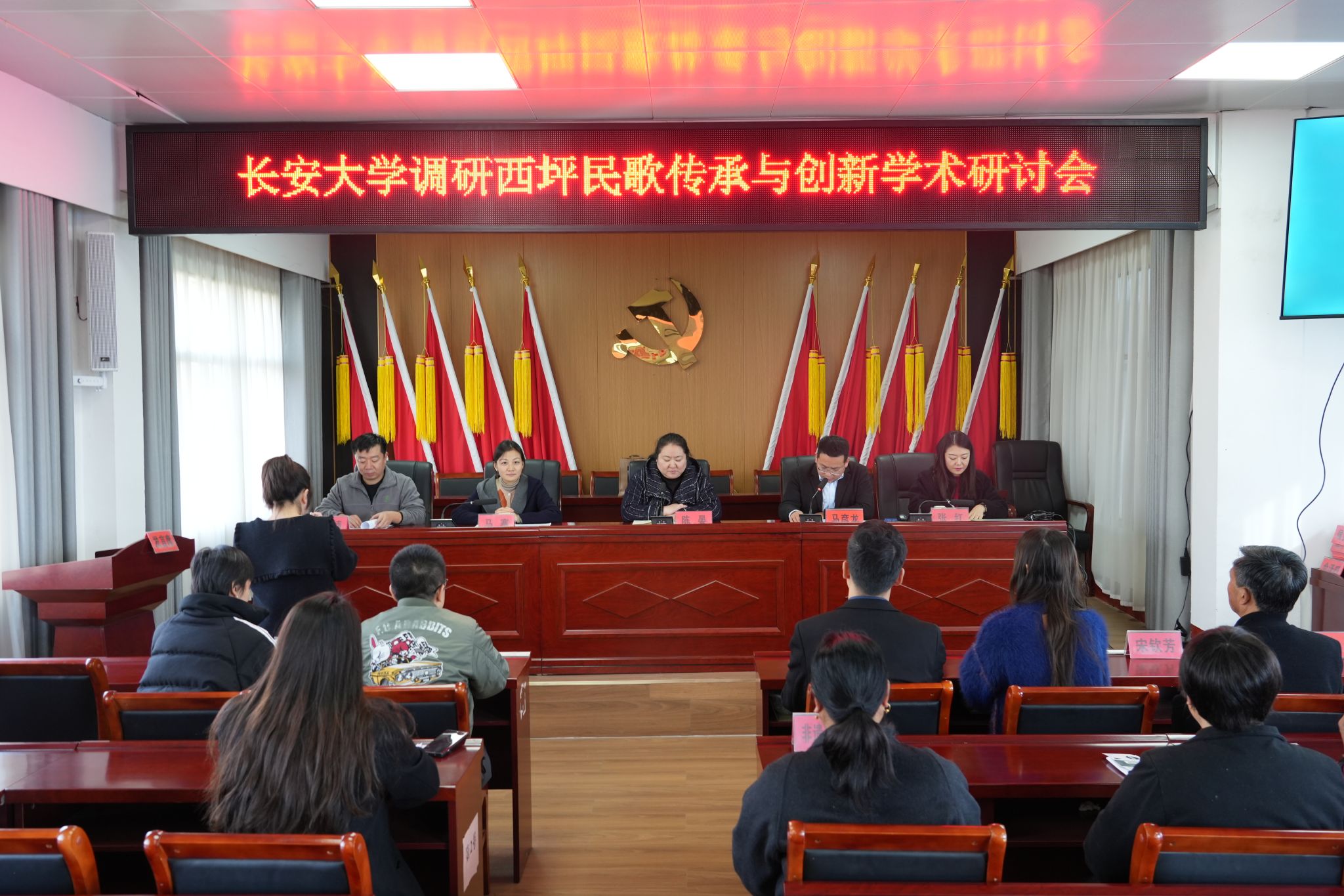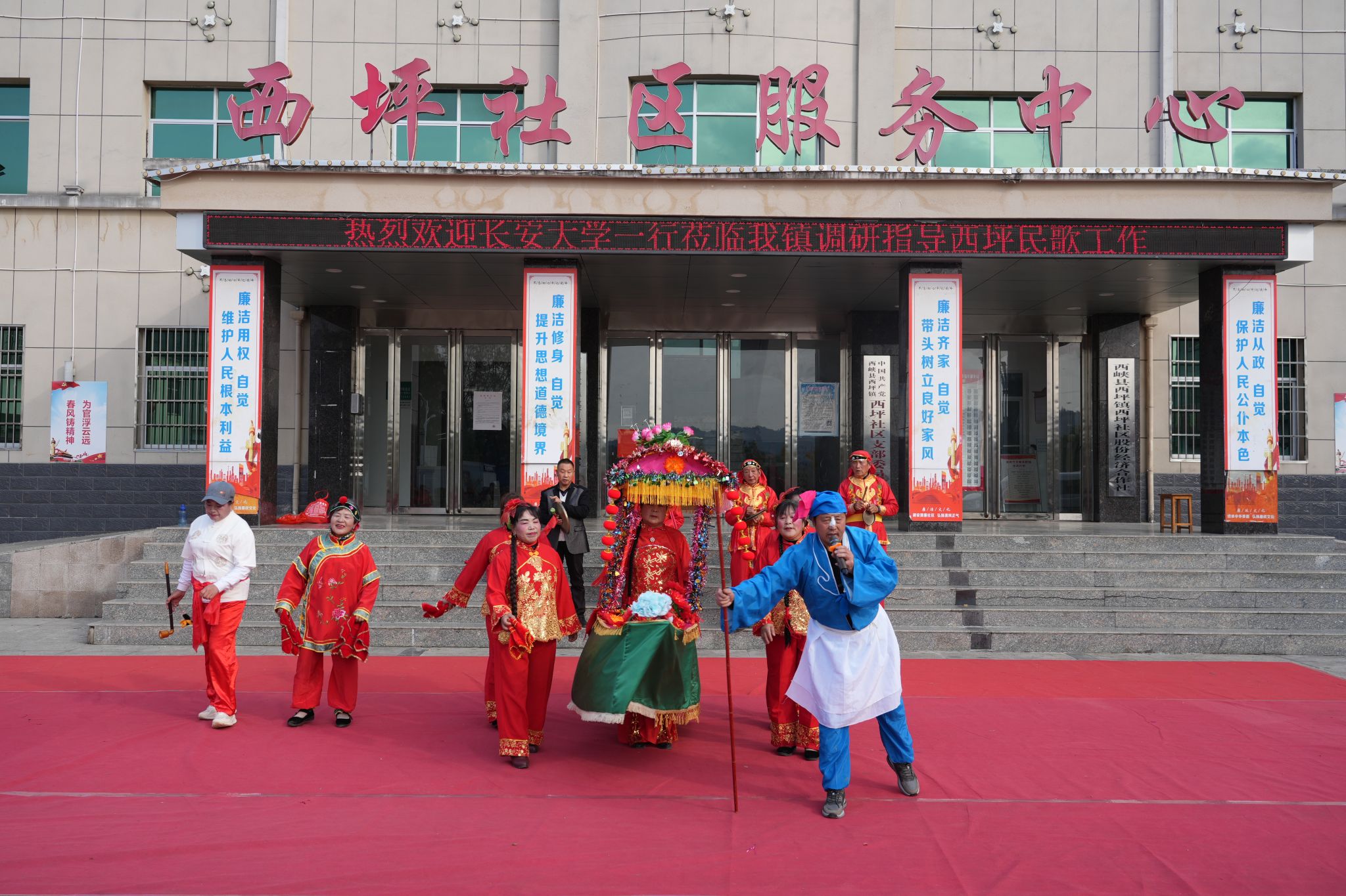 会前,陈晏一行在西坪社区服务中心实地调研了国家级非物质文化遗产“西坪民歌”,观看现场演出并与传承人深入交流,进一步了解“西坪民歌”的艺术特点与传承现状。
