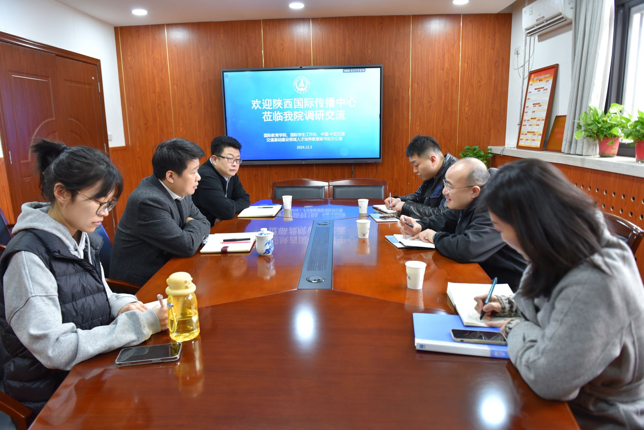 王冬对学院的工作给予高度评价,并分享了陕西国际传播中心在对外宣传、文化交流等方面的经验。他表示,希望通过此次调研,能够进一步加强双方之间的沟通与合作,共同探索更多元化的合作形式,以更好地服务于国家对外开放大局。
