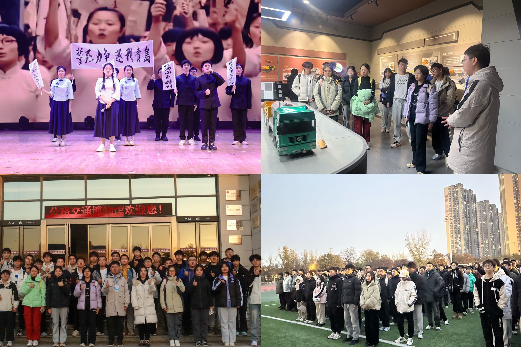 坚持知行合一,汇聚青年爱国主义青春合力。学院注重实践育人,引领动员广大青年在实践中彰显报国之志。通过开展纪念“一二·九”运动升旗仪式、参观开云kaiyun官网公路交通博物馆、同唱《我和我的祖国》、自编自导自演情景朗诵《如愿》等一系列丰富多彩的实践活动,引导学生将爱国情内化于心、外化于行,将个人梦想与国家发展紧密结合,为实现交通强国贡献青春力量。